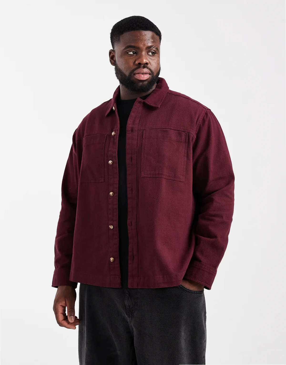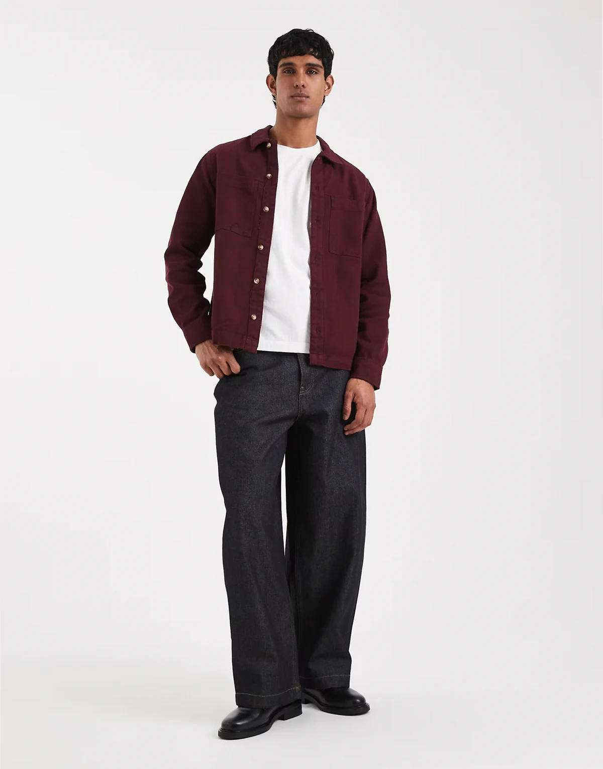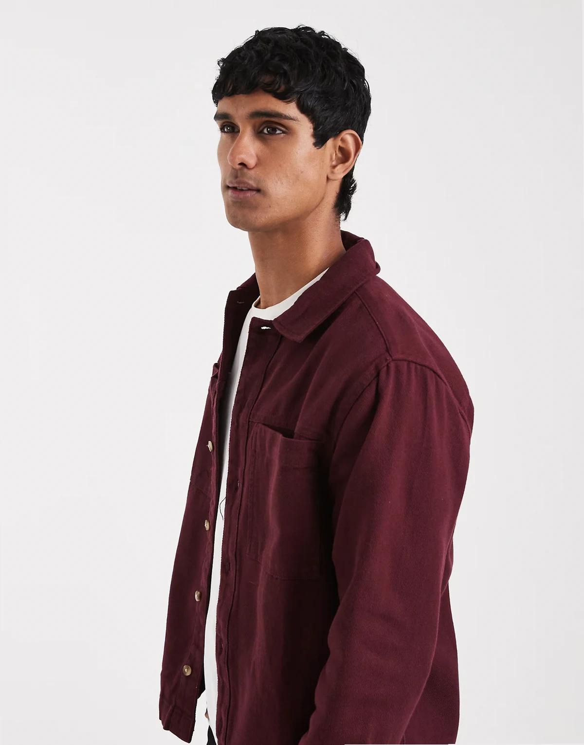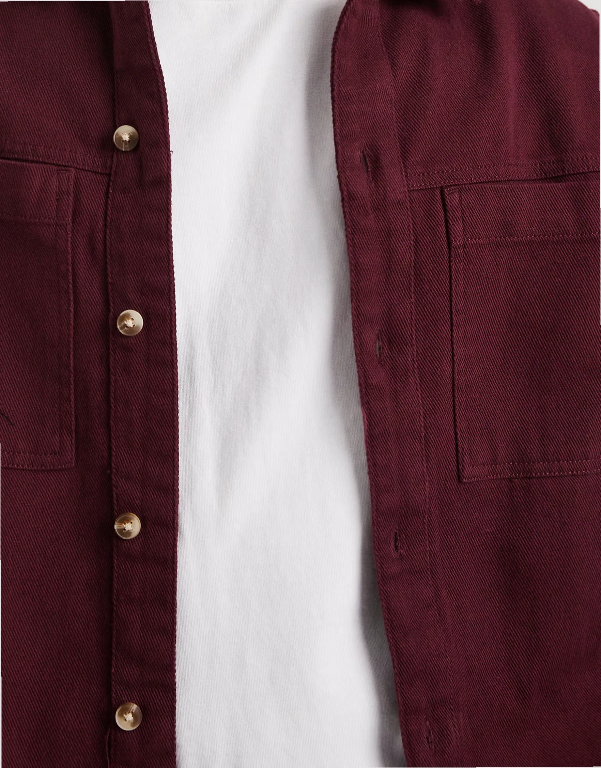 – Hemdjacke aus schwerem Baumwolltwill in Burgunderrot