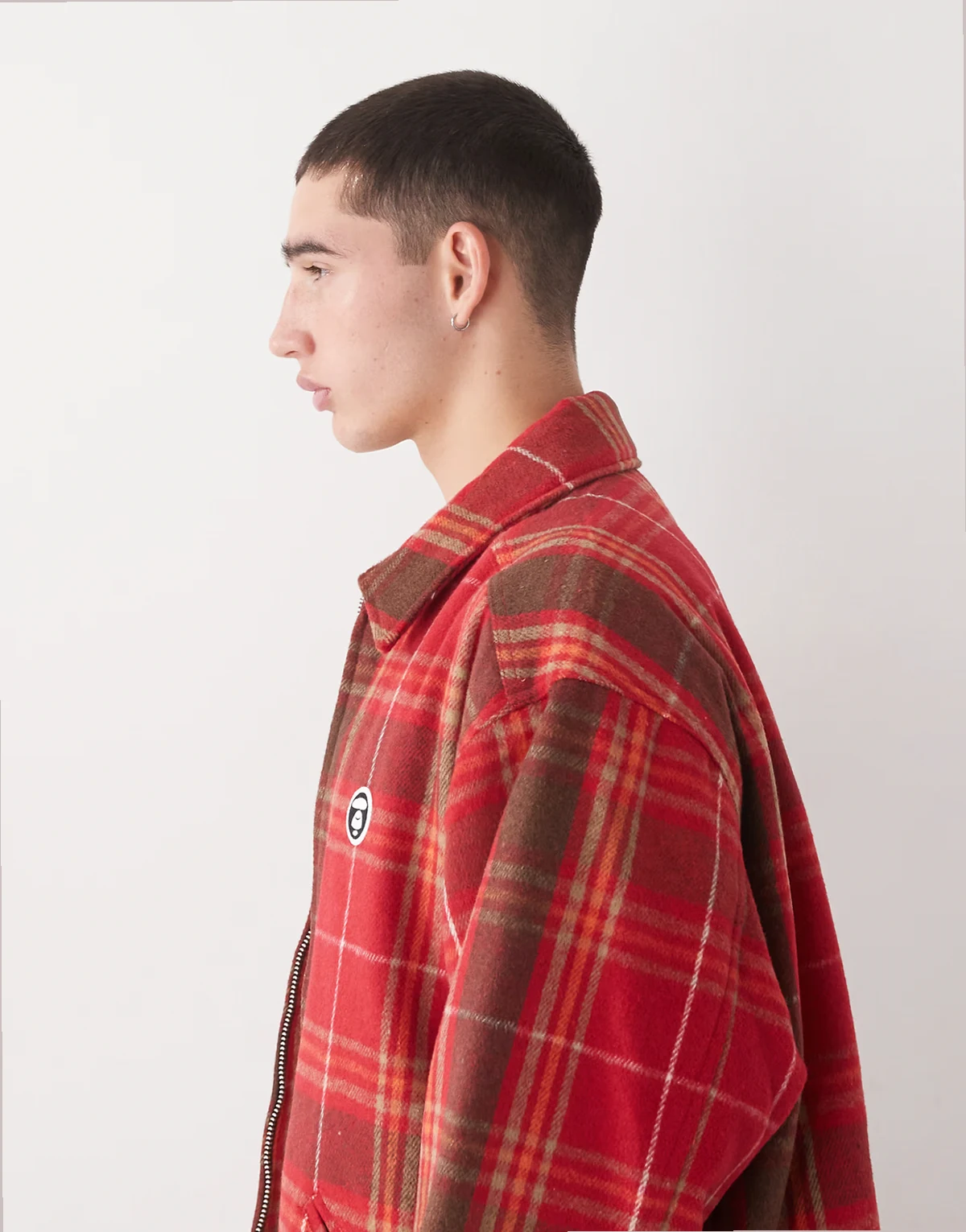 Aape by A Bathing Ape – Wattierte Flanellhemdjacke in Rot und Braun
