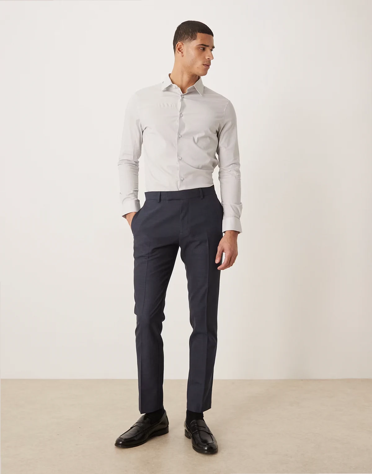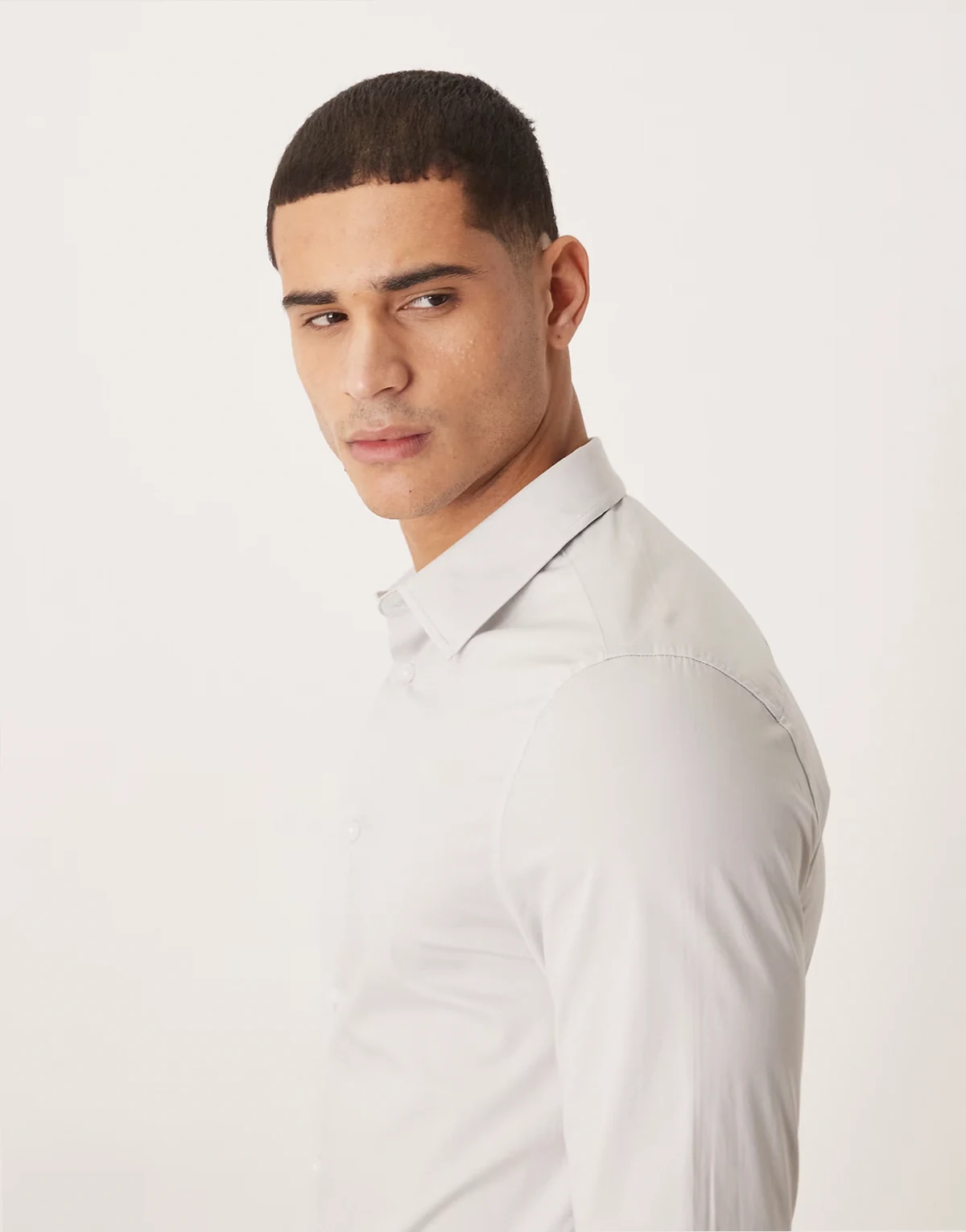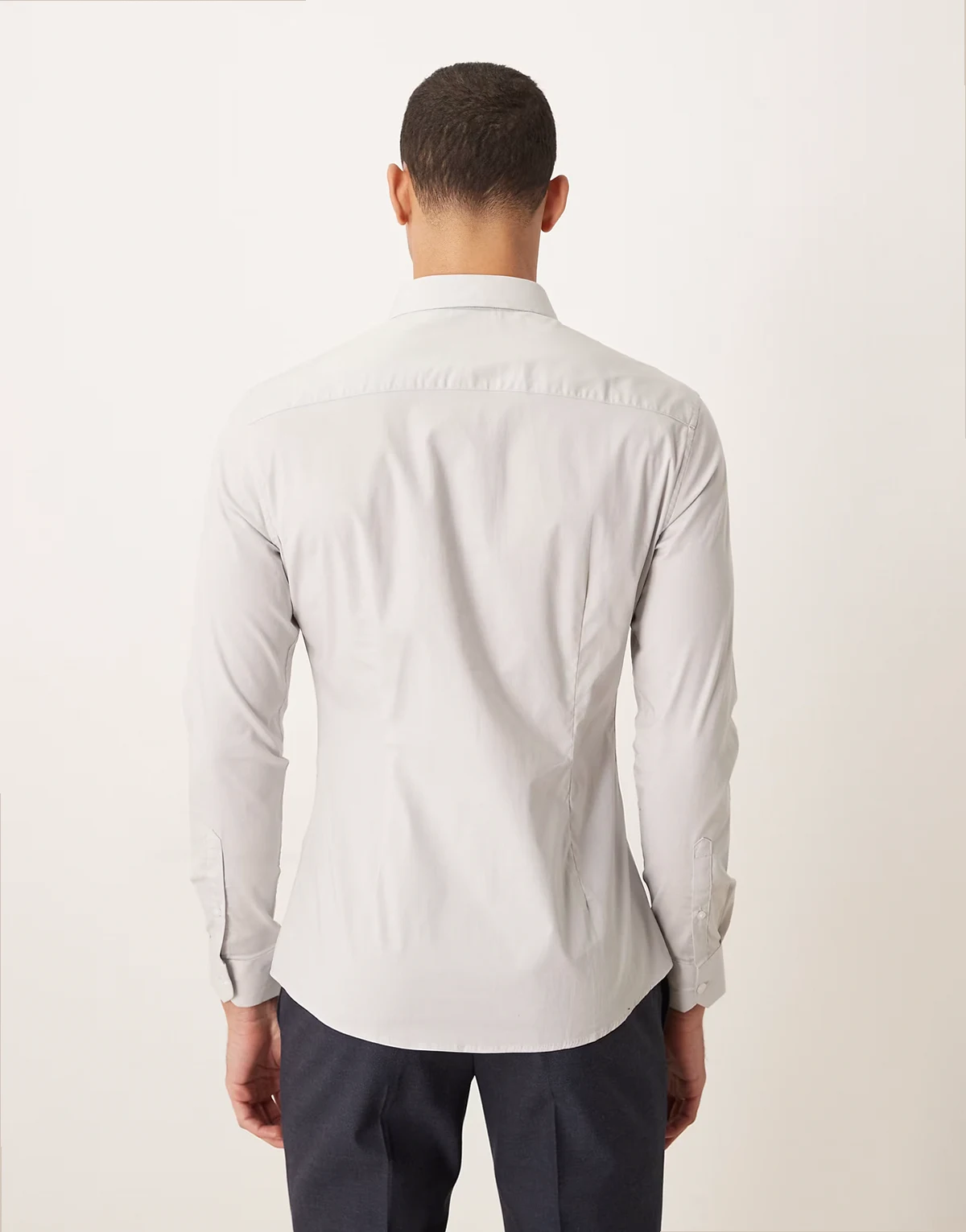 – Bürohemd in Hellgrau mit Stretchanteil und engem Schnitt
