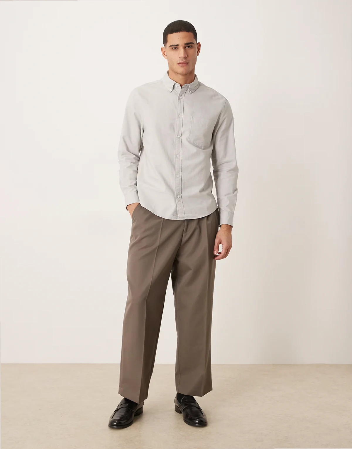 – Oxford-Hemd in Hellgrau mit Regular-Fit-Passform