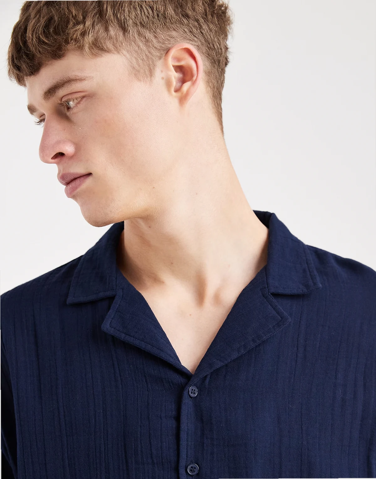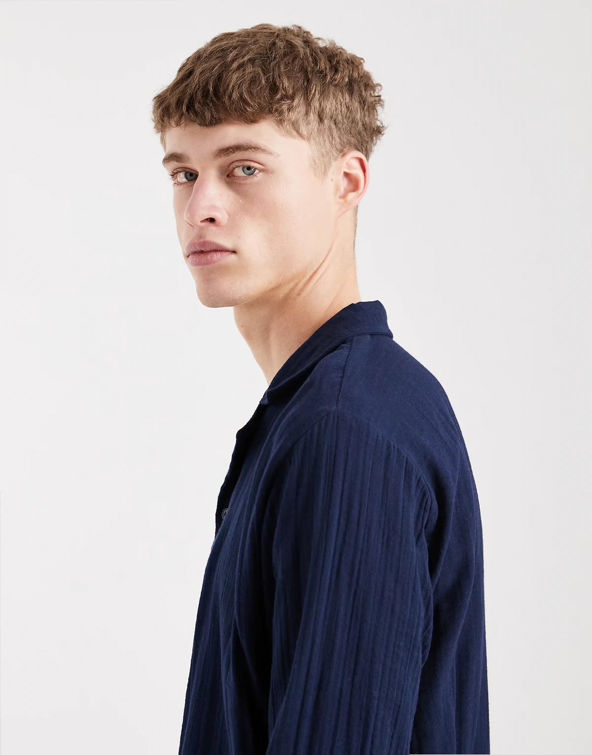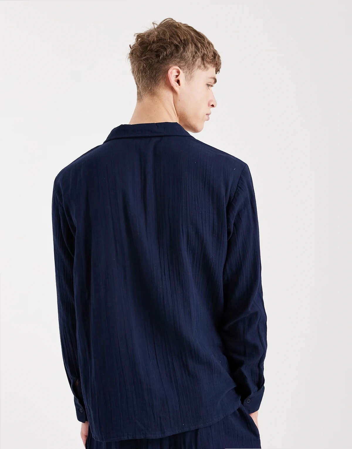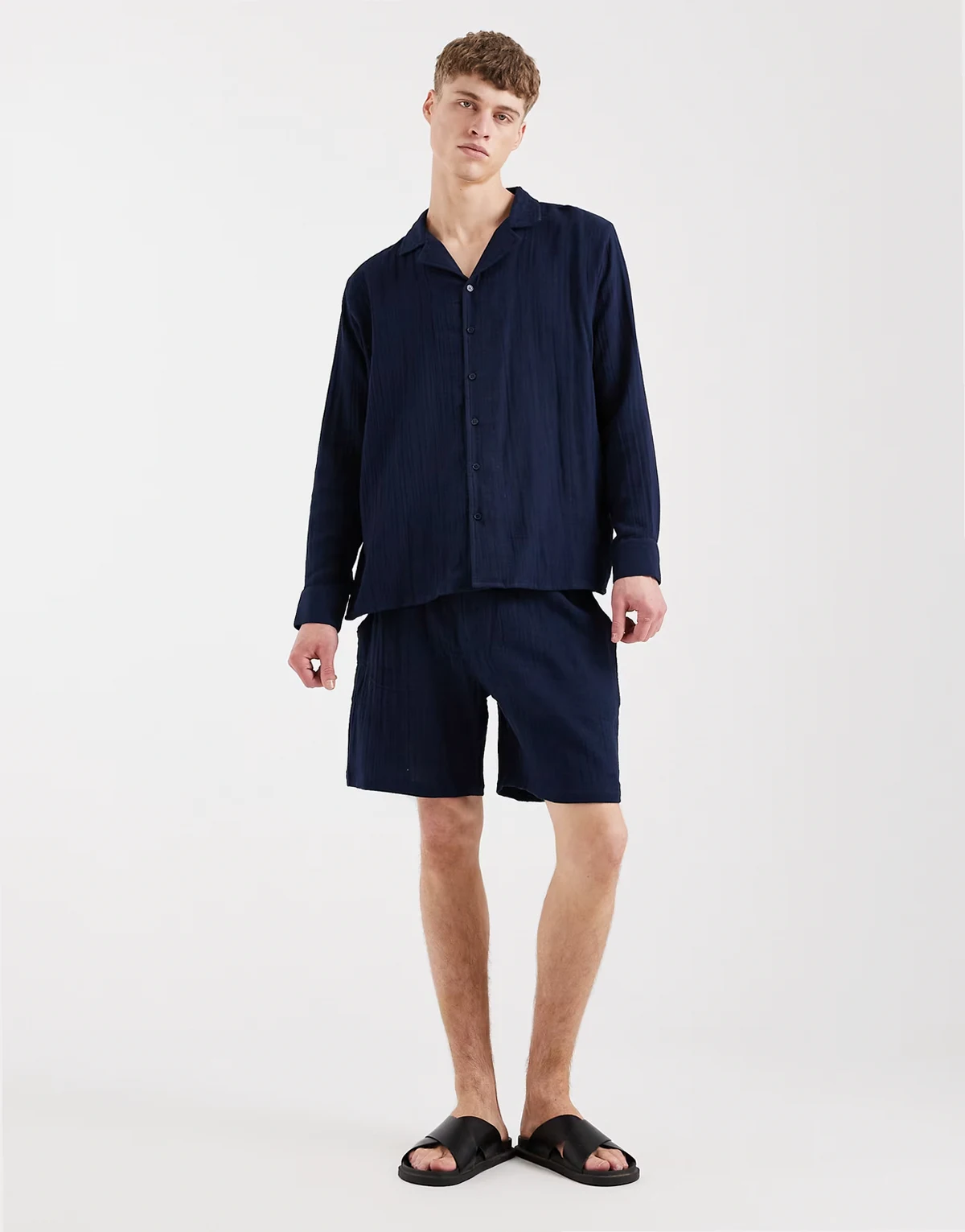 – Langärmliges Strandhemd in Marineblau mit Waffelstruktur, Kombiteil