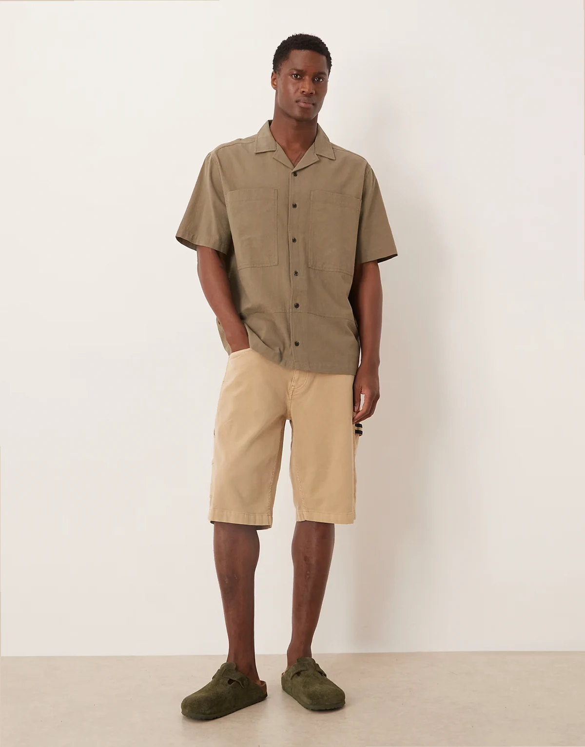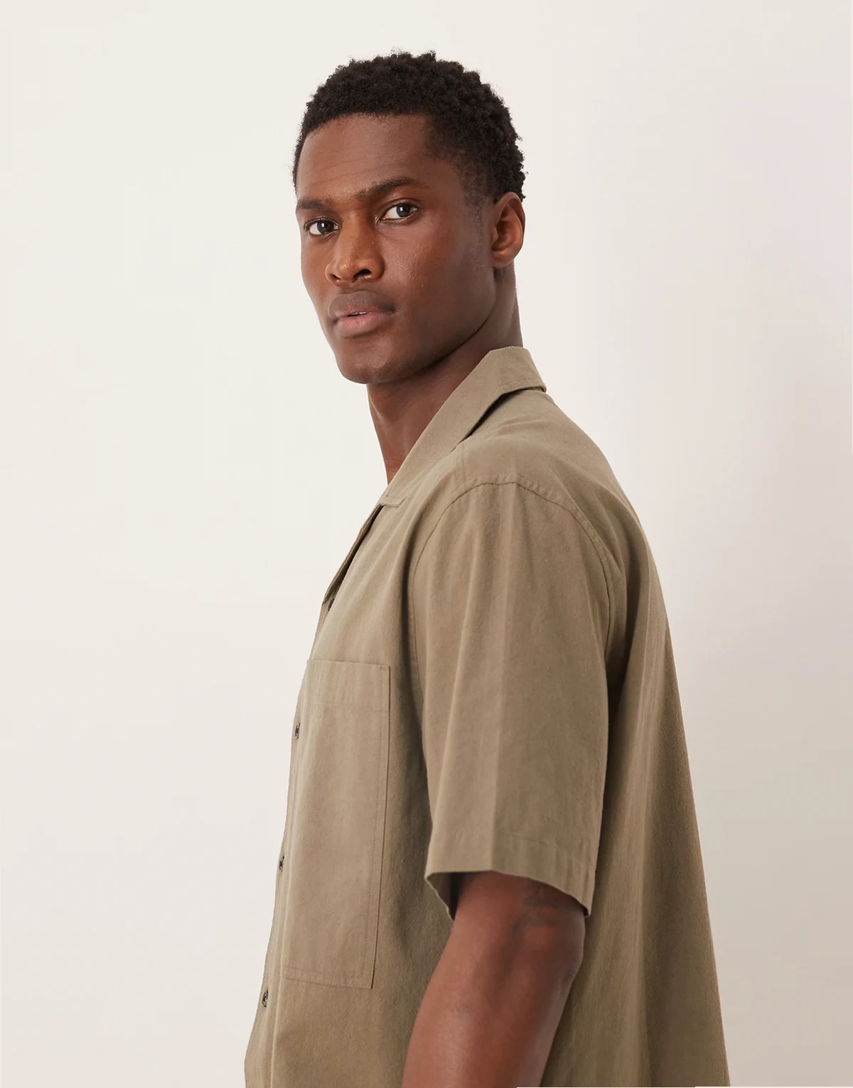 – Relaxed-Fit-Baumwollhemd in Khaki mit Reverskragen und Brusttasche