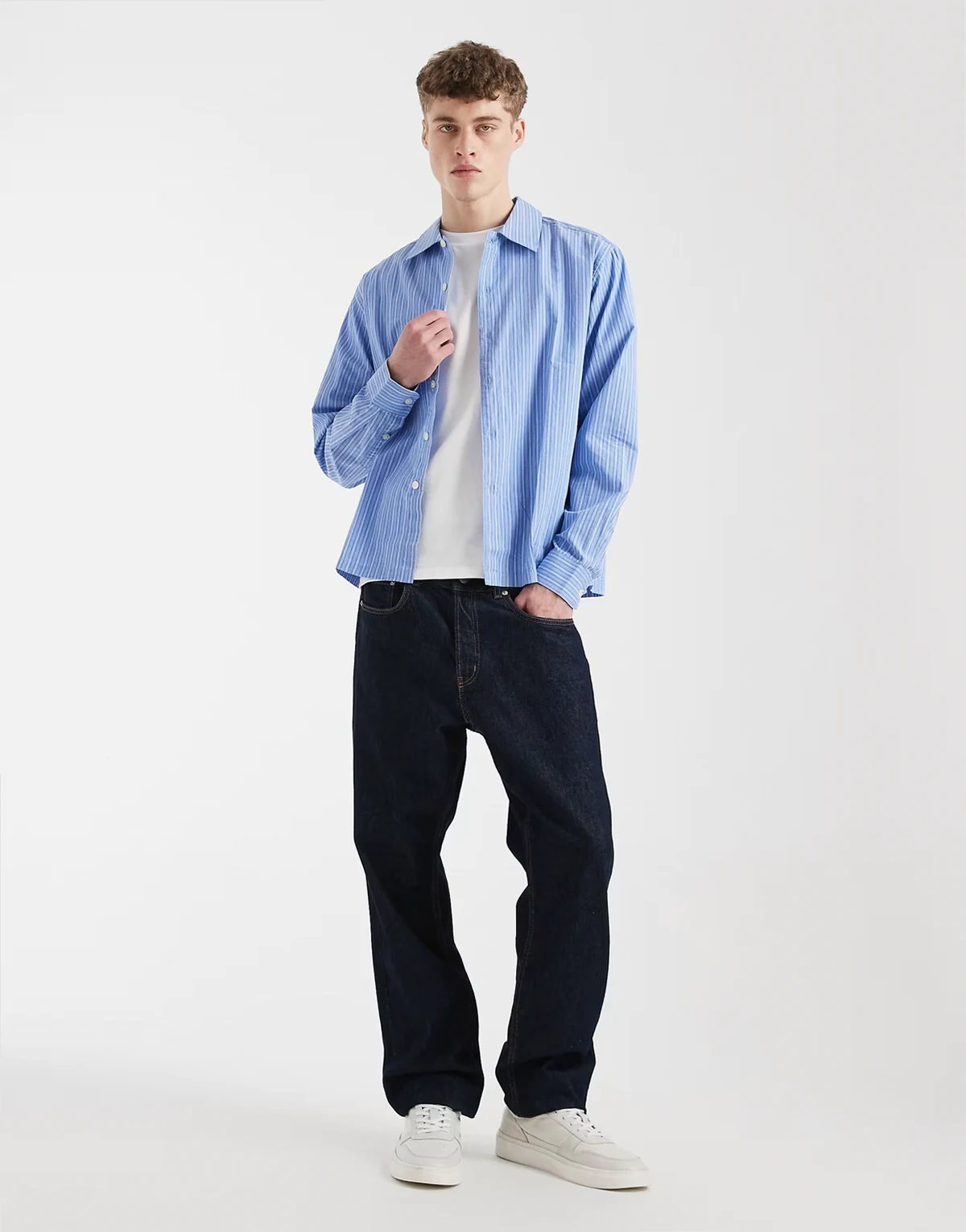 – Langärmliges, locker geschnittenes Hemd in Blau gestreift