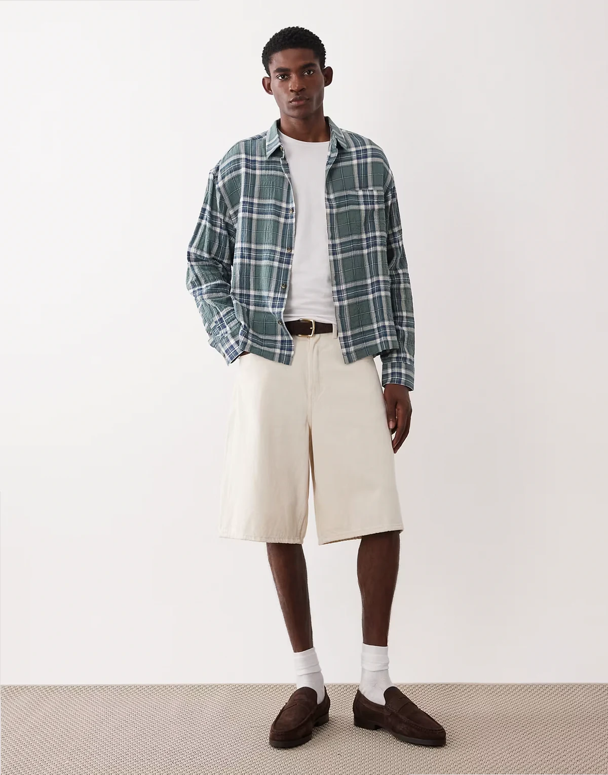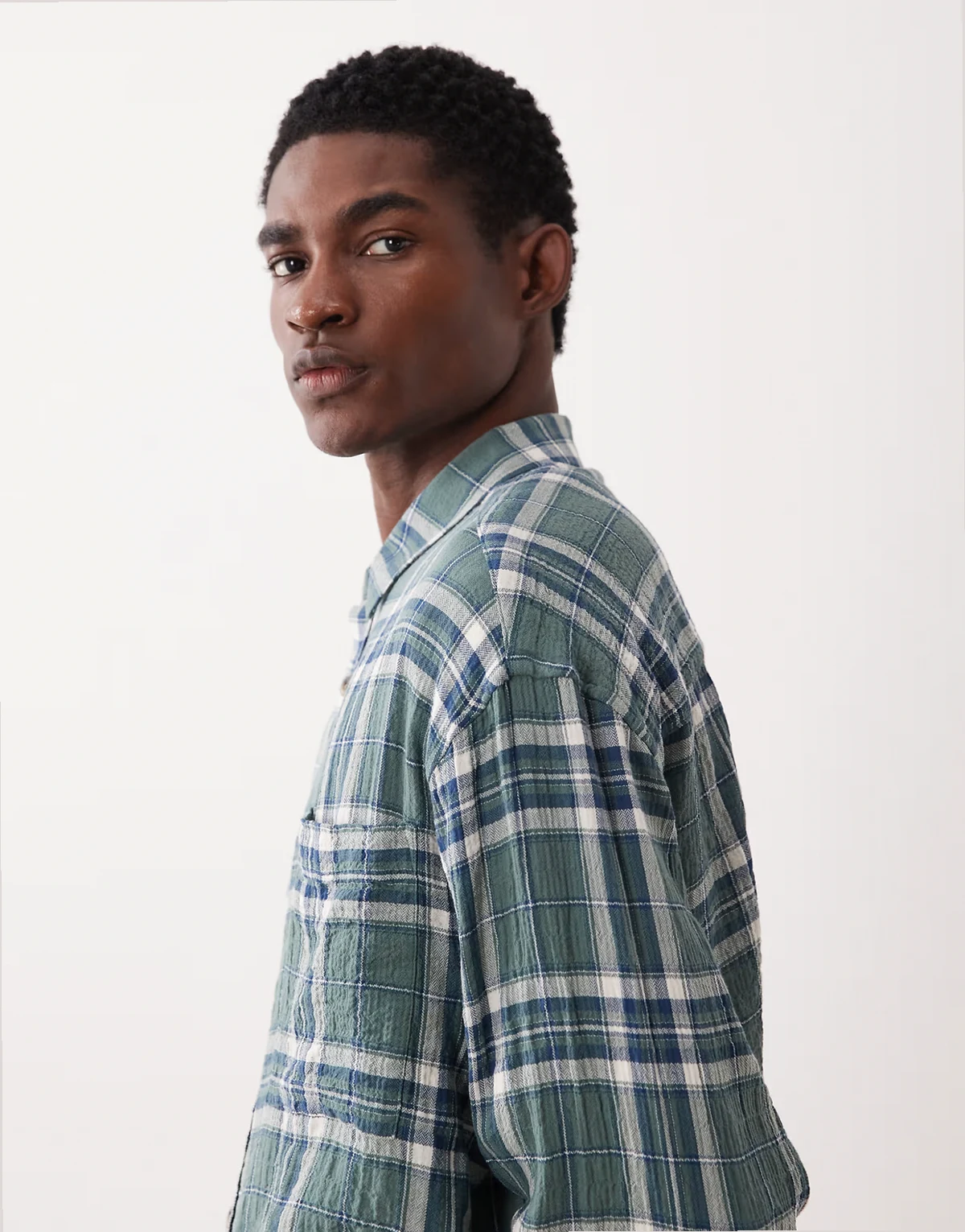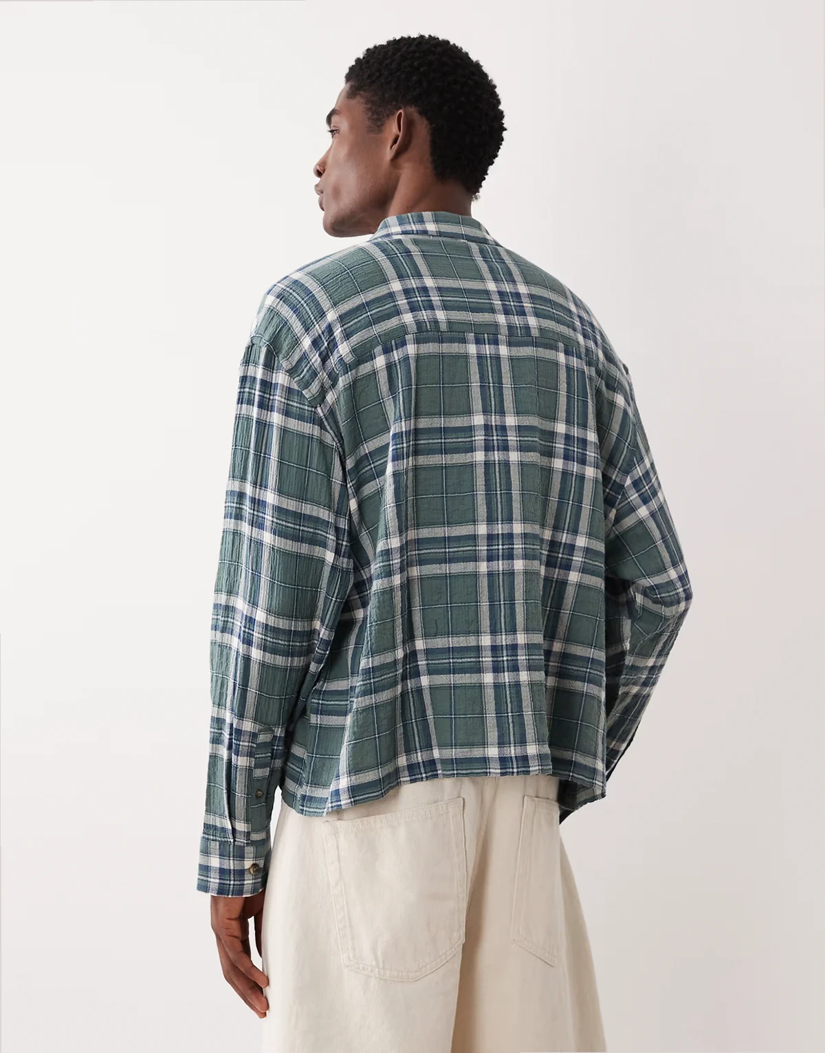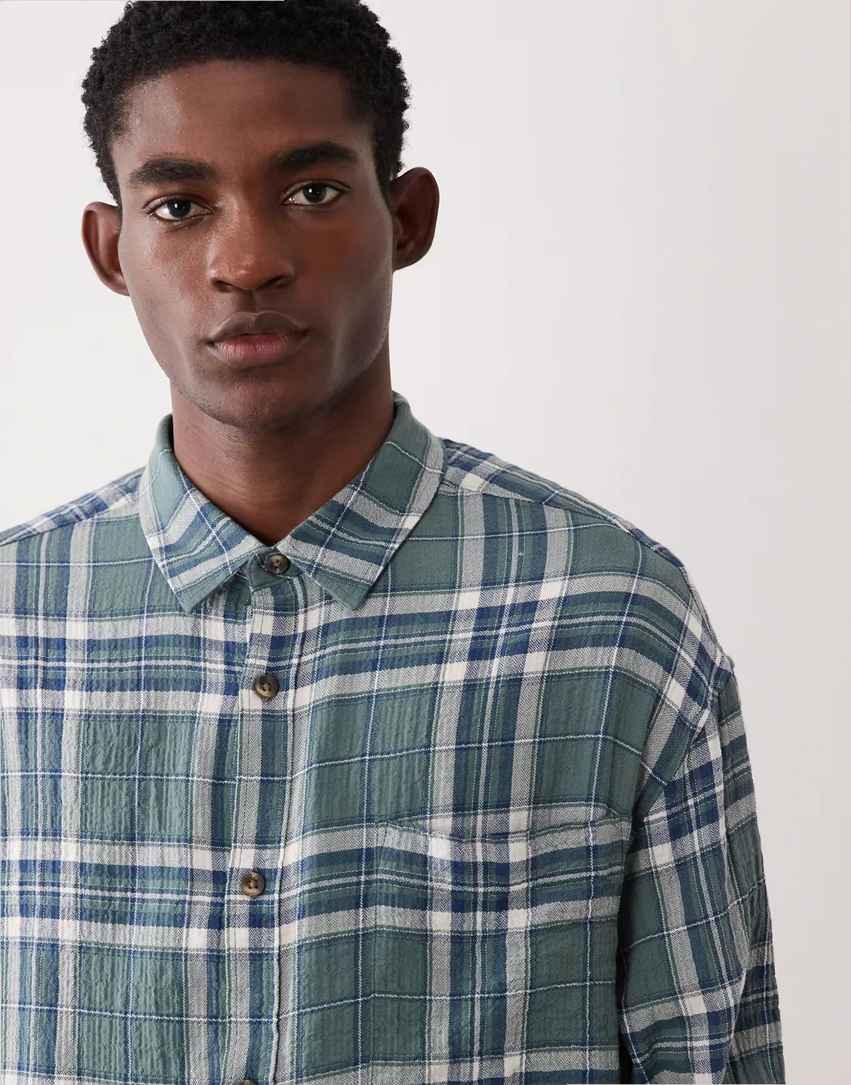 – Kastiges Oversize-Hemd in Dunkelgrün mit strukturiertem Karomuster