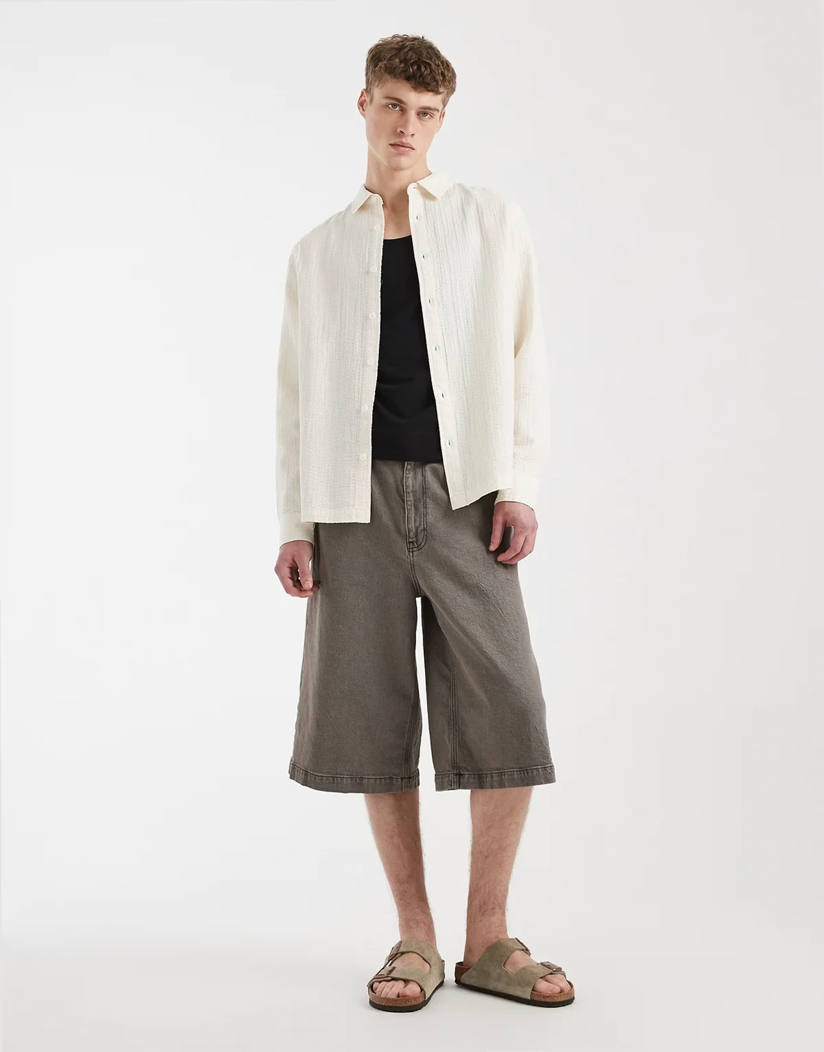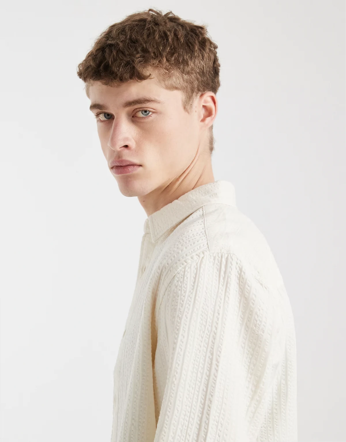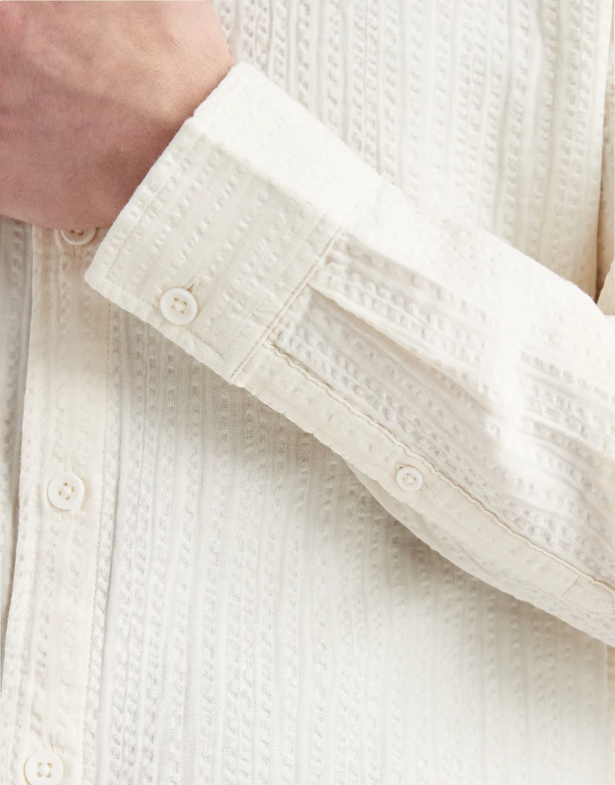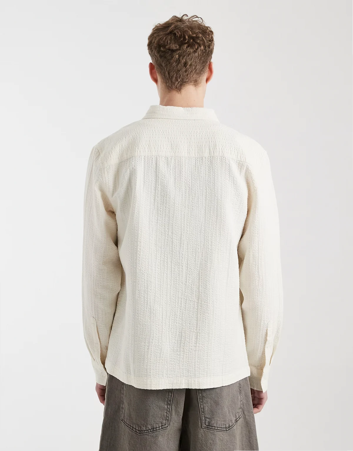 – Hemd in Creme mit Knitterstruktur und regulärer Passform