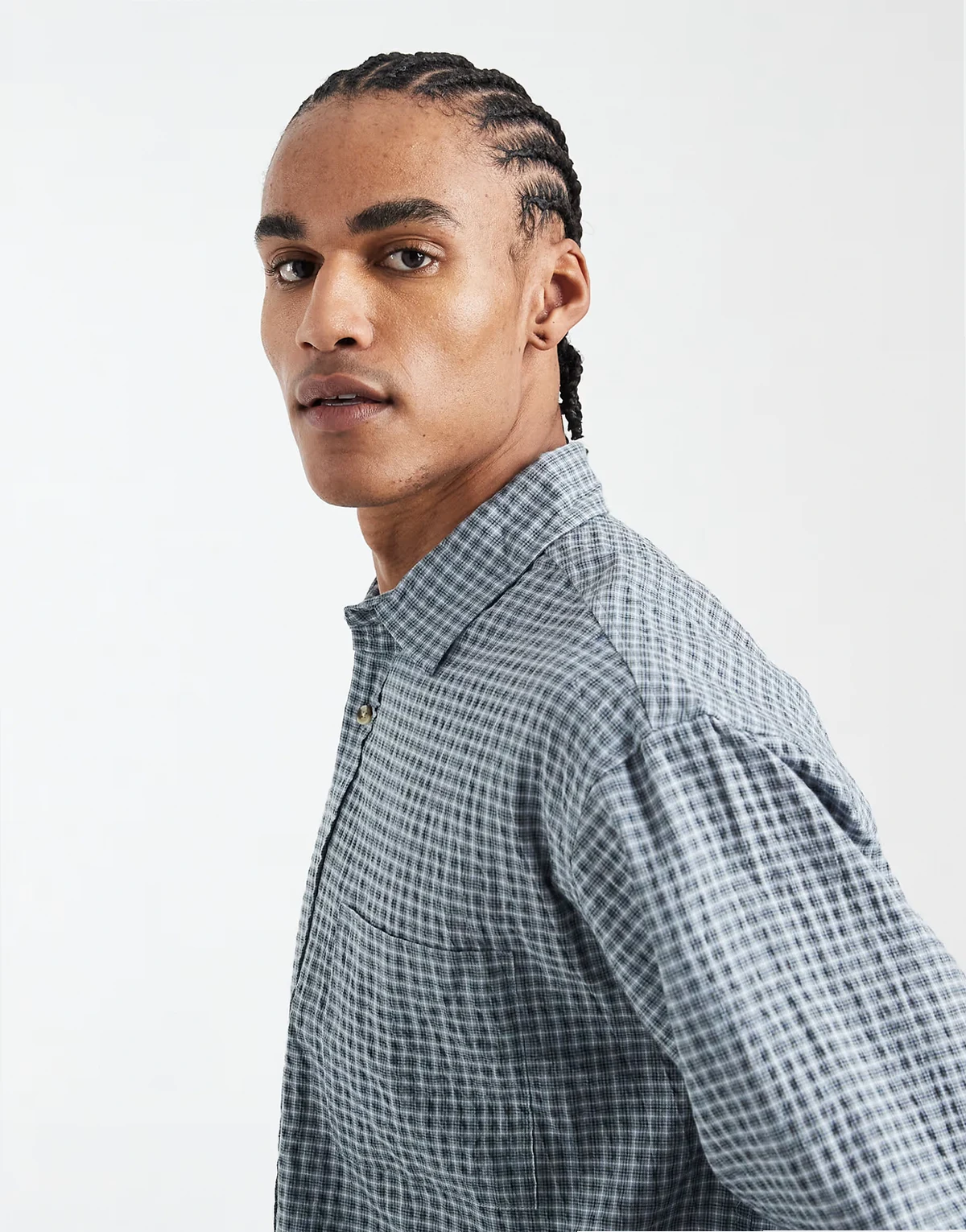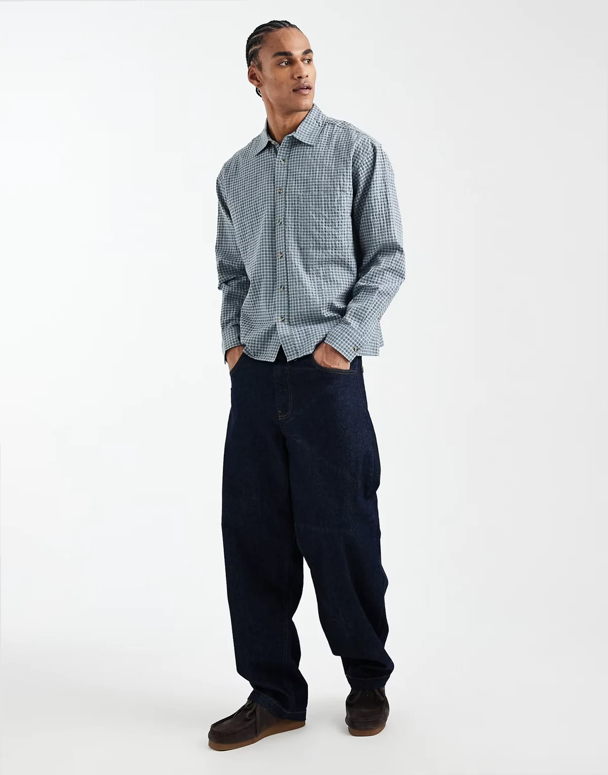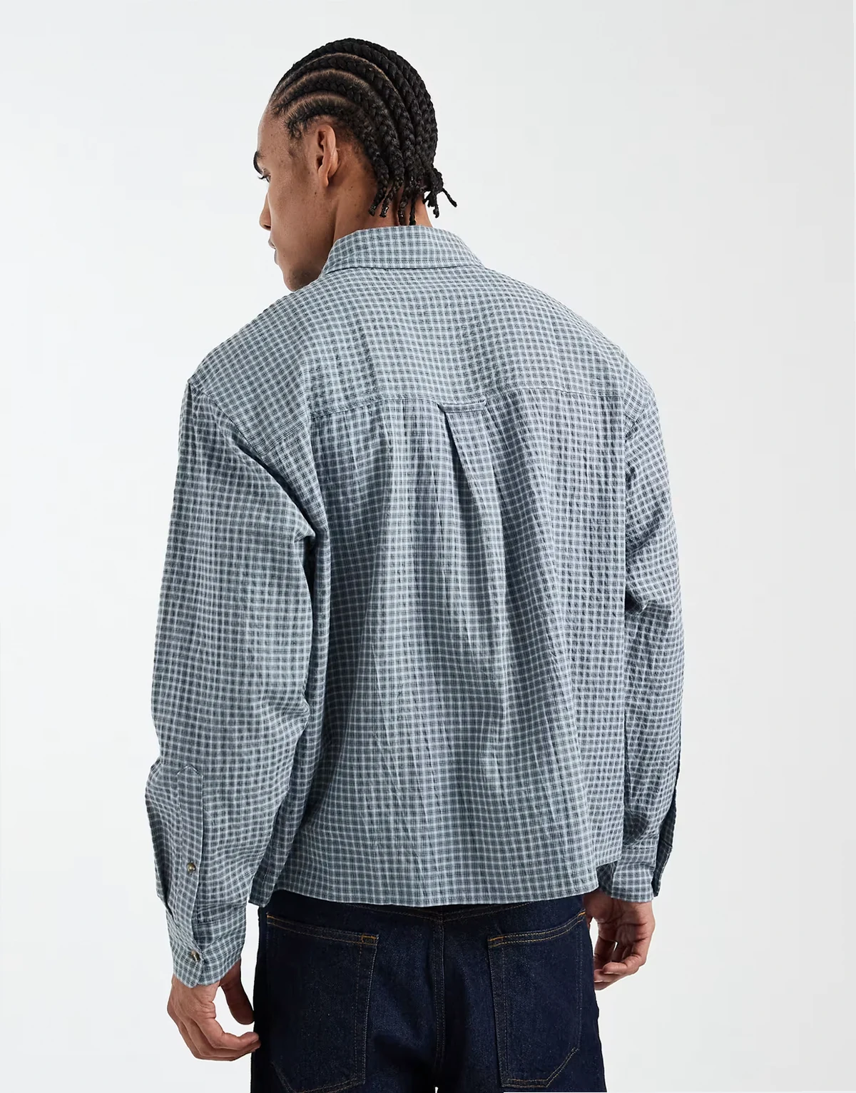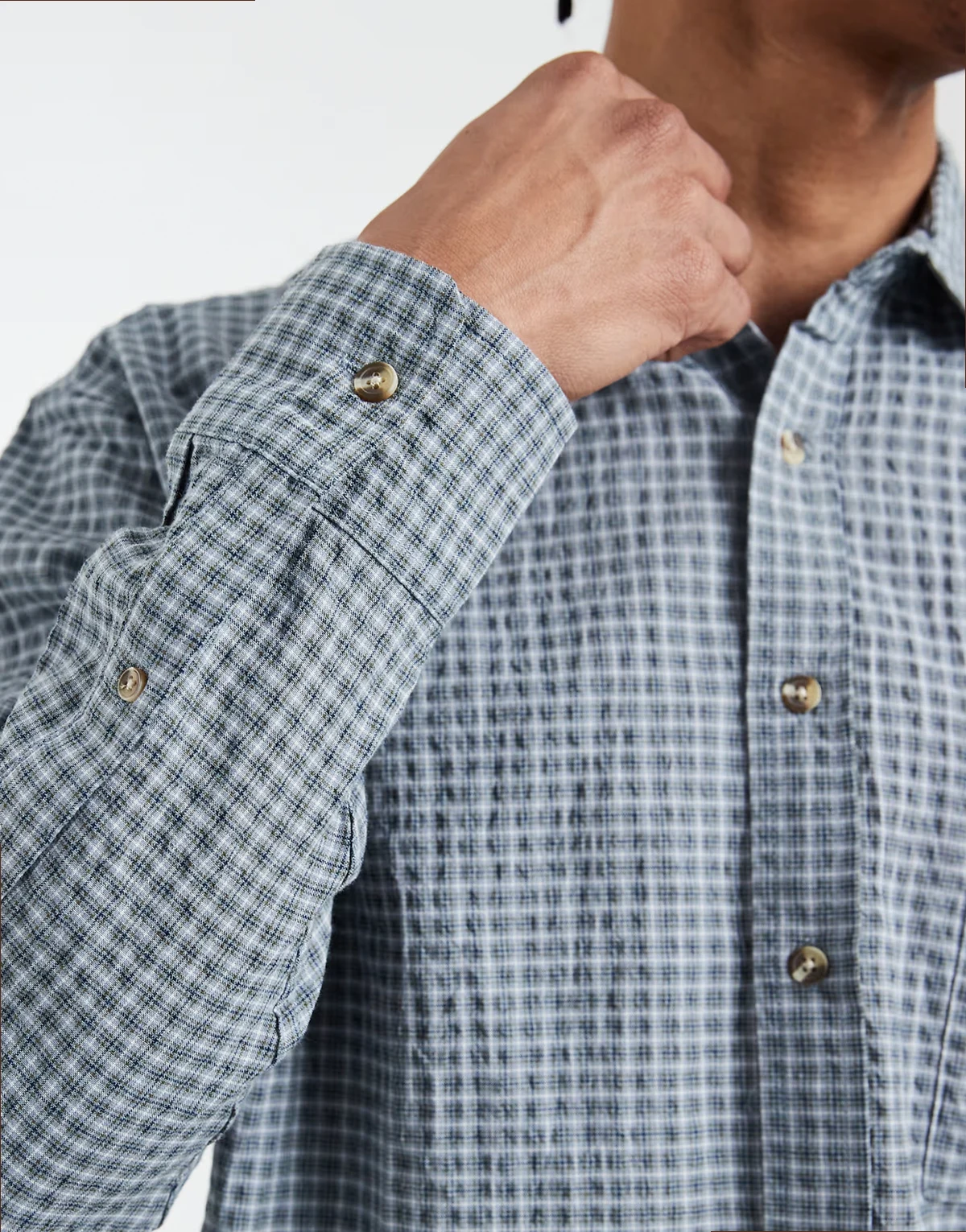 – Hudson – Langärmliges Hemd in Blau mit kleinem Karomuster