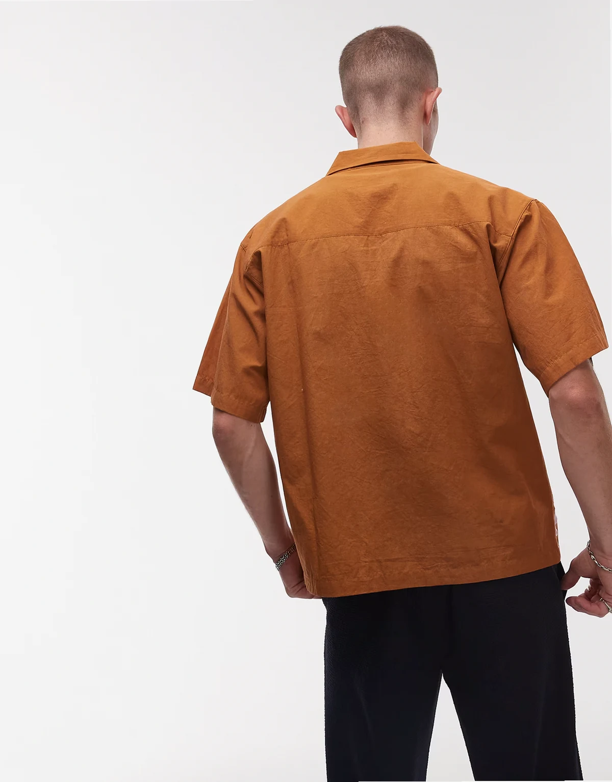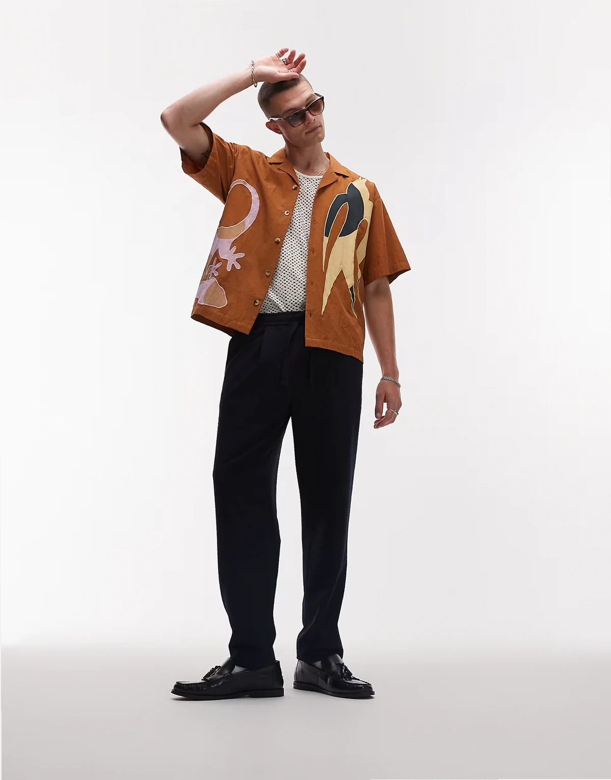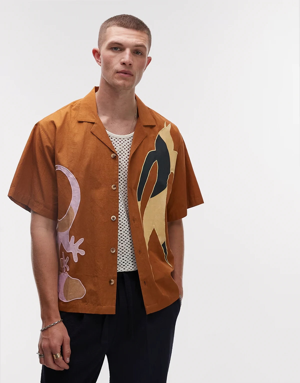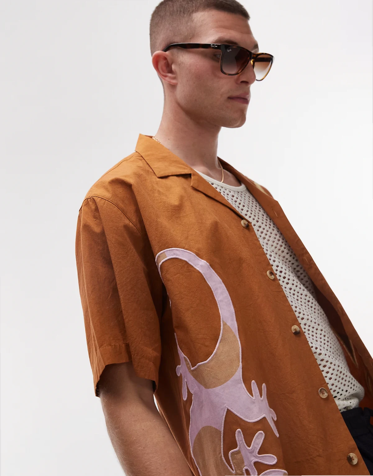 – Kurzärmliges Hemd in Hellbraun mit Stickerei und Aufnähern