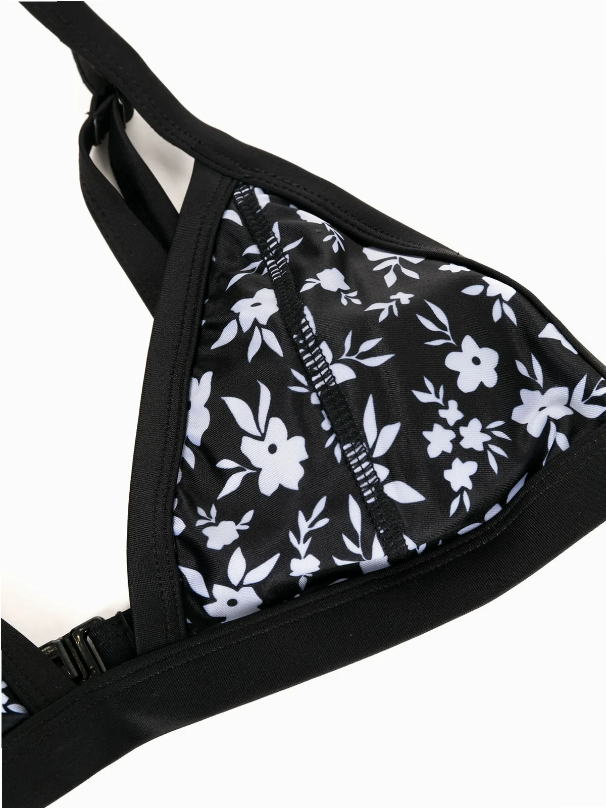 Schwarz/Weiß, recyceltes Polyestergemisch, Triangel-Design, durchgehender Blumen-Print, Ziersaum, verstellbare Spaghettiträger, herausnehmbare Kissen, Spangenverschluss hinten, komplett gefüttert. Swimwear kann nur über Ihrer eigenen Unterwäsche anprobiert werden. Taucherbrille und Schnorchel sind optional.... .
