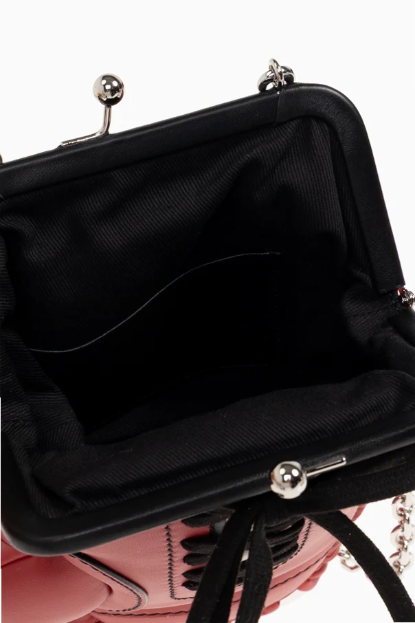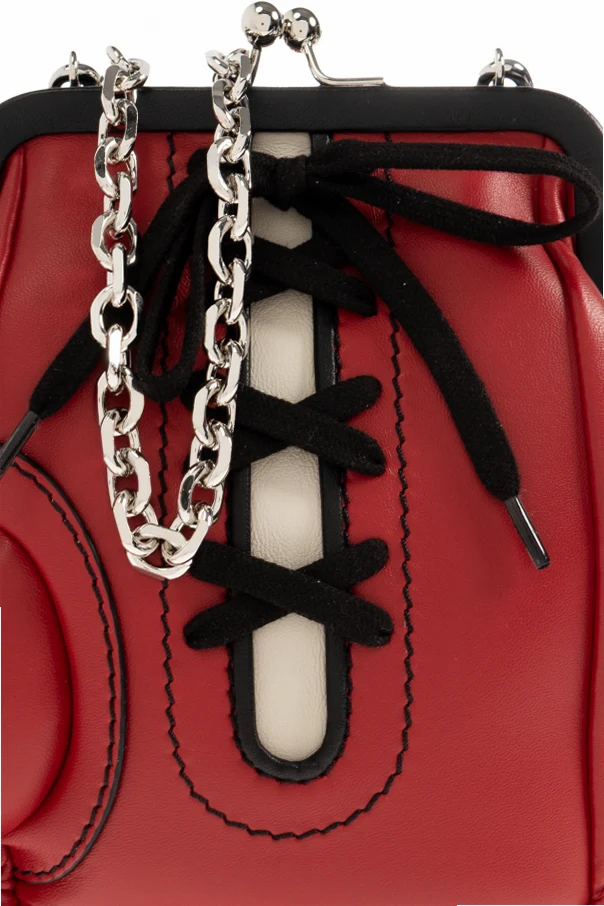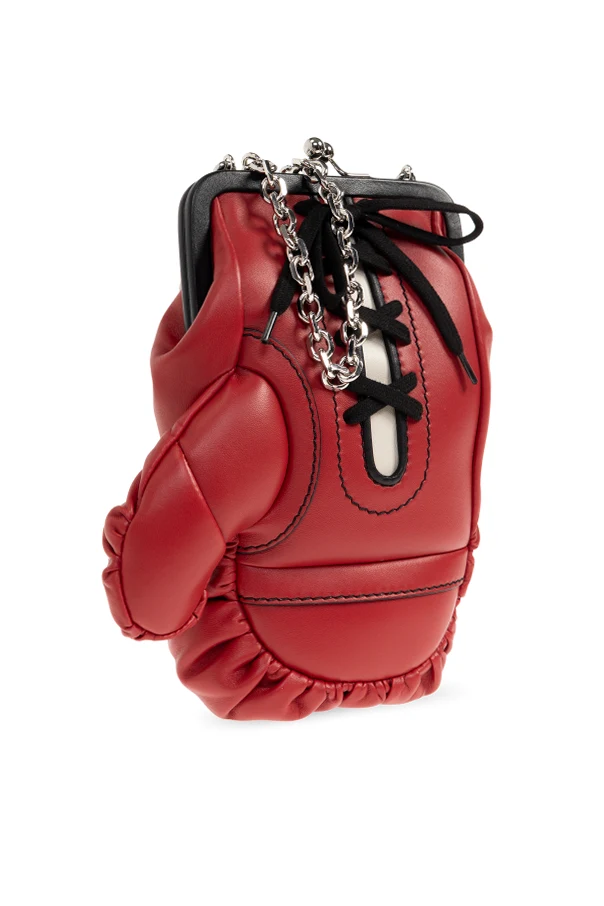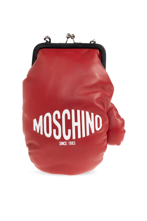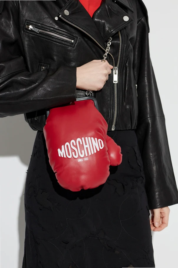 Schultertasche mit Handschuh-Motiv von Moschino verkörpert extravaganten Luxus und eine ungewöhnliche Herangehensweise an Formgebung. Das vom Boxhandschuh inspirierte Design begeistert durch seine originelle Form, Liebe zum Detail und das auffällige, rote Leder. Eindrucksvolle Nähte, Erhebungen und dekorative Schnürungen erinnern an einen klassischen Handschuh, während der obere Verschluss mit einem Metallbügel traditionelle Eleganz aufgreift.