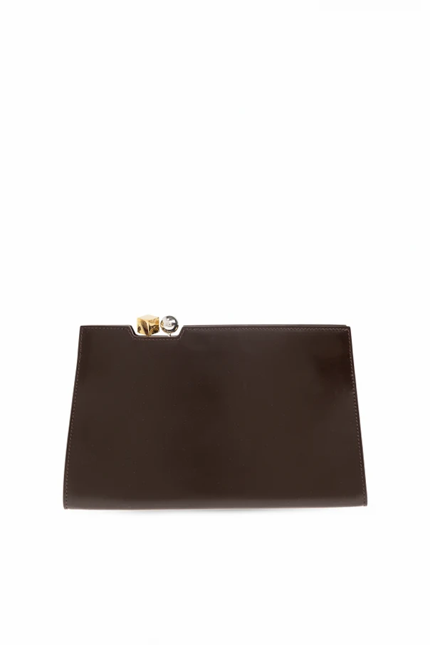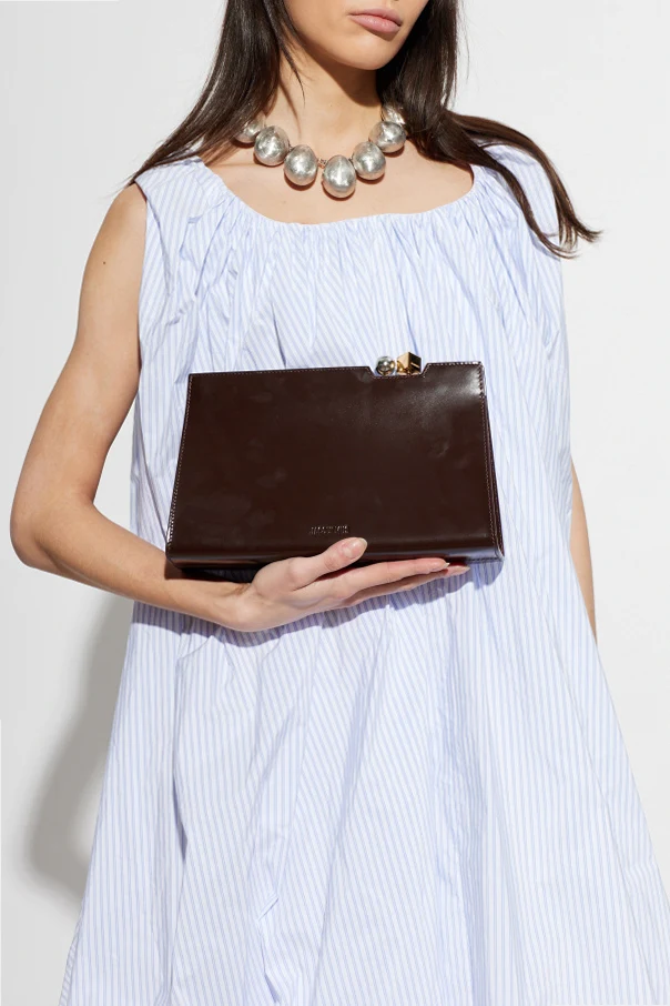 Clutch „Le Salon” von Jacquemus ist ein raffiniertes Beispiel für Perfektion in der Welt der eleganten Accessoires. Ihre rechteckige Form verläuft nach unten leicht ausgestellt und verbindet die Ausdrucksstärke der Silhouette mit Leichtigkeit und praktischer Tiefe. Die Tasche ist aus glattem, hochwertigem Kalbsleder in einem edlen, braunen Farbton gefertigt, der dem gesamten Design einen zeitlosen Charme verleiht.