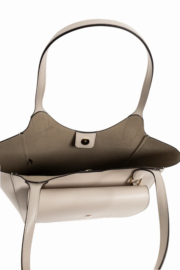 Die cremfarbene Shopper-Tasche Lea Small von Furla verkörpert zeitlose Eleganz in ihrer reinsten Form. Ihre klassische, trapezförmige Silhouette mit sanft gerundeter Oberlinie und dezent ausgestellten Seiten betont die raffinierte Schlichtheit der Form. Das hochwertige, strukturierte Leder mit leicht gekörntem Finish ist besonders kratzfest und garantiert ein langanhaltendes, makelloses Erscheinungsbild.
