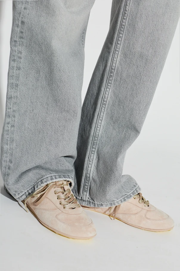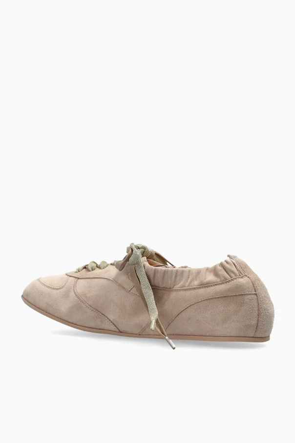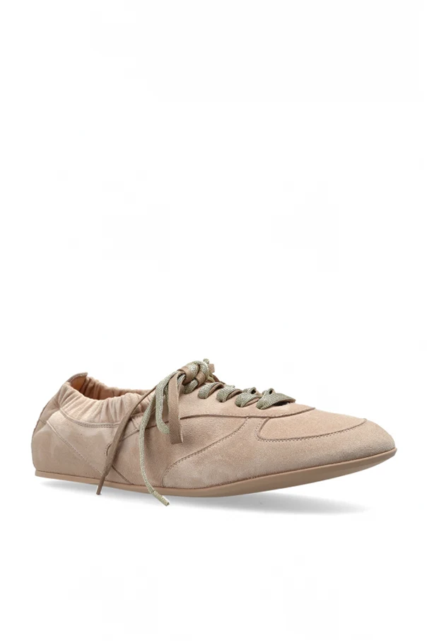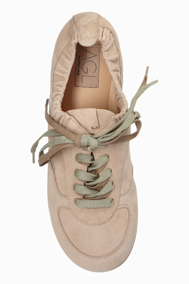 Hoola Hoop Wildleder-Sneaker von AGL sind die Essenz raffinierter Eleganz im Alltag. Die klassische, schlanke Form der Low-Top-Sneaker mit sanft abgerundeter Schuhspitze und flacher, dezenter Sohle sorgt dafür, dass die Schuhe äußerst leicht und stilvoll wirken. Das exklusive beigefarbene Wildleder besticht durch seine samtige Oberfläche und Gleichmäßigkeit, während die kunstvoll gearbeitete Raffung am Knöchel den besonderen Charakter des Schuhs unterstreicht.