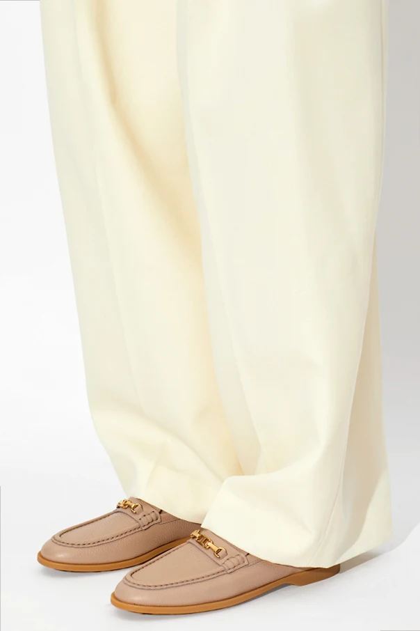 Die Aufmerksamkeit zieht ein edles, goldfarbenes Metallelement auf dem Spann auf sich, das einen noblen Akzent setzt. Das Obermaterial und das Innenfutter bestehen aus hochwertigem, leicht genarbtem Naturleder und unterstreichen den luxuriösen Charakter dieses Schuhwerks. Die Gummisohle mit kleinen, gummierten Noppen garantiert exzellente Griffigkeit und Komfort bei jedem Schritt. Das Modell zeichnet sich durch eine edle, beige Farbnuance aus, die sich hervorragend mit einer vielfältigen Garderobe kombinieren lässt.