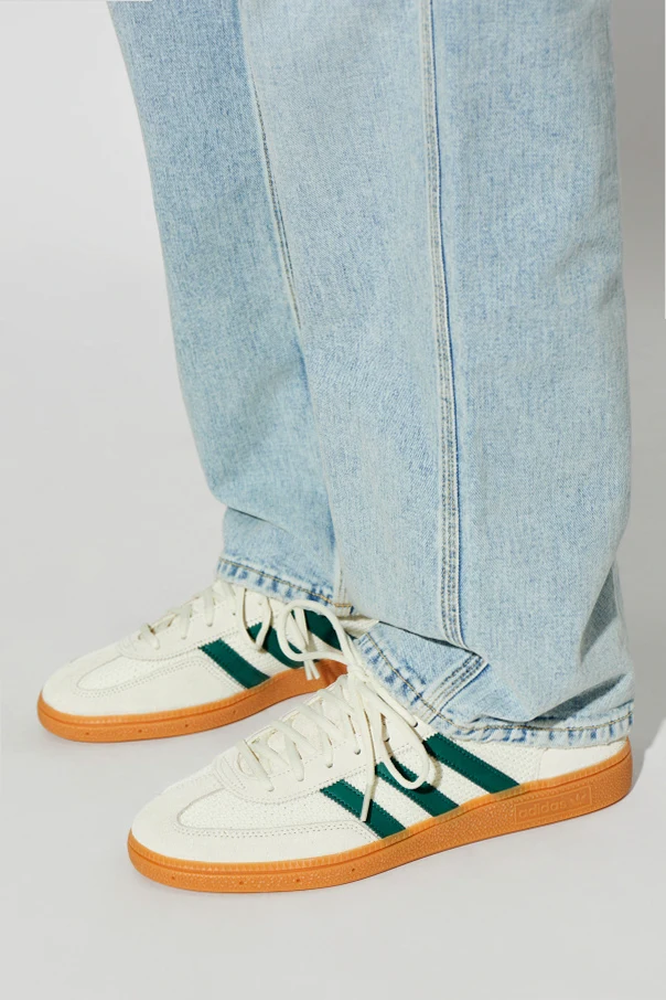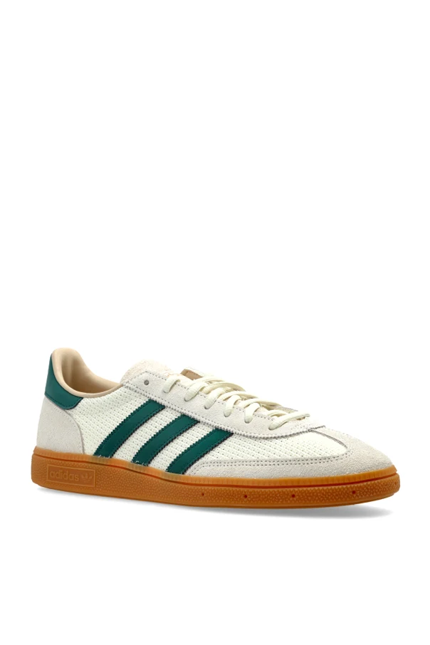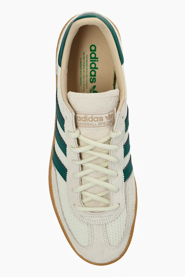 Handball Spezial Sneaker zeichnen sich durch eine raffinierte Ästhetik aus, die von klassischem Retro-Stil inspiriert ist. Das sorgfältig gestaltete, niedrige Obermaterial aus cremefarbenem Veloursleder und glattem Leder vereint harmonisch eine anatomische Passform mit höchstem Tragekomfort. Subtile Kontraste in der Haptik, hervorgehoben durch die grünen seitlichen Streifen, betonen die außergewöhnliche Liebe zum Detail.