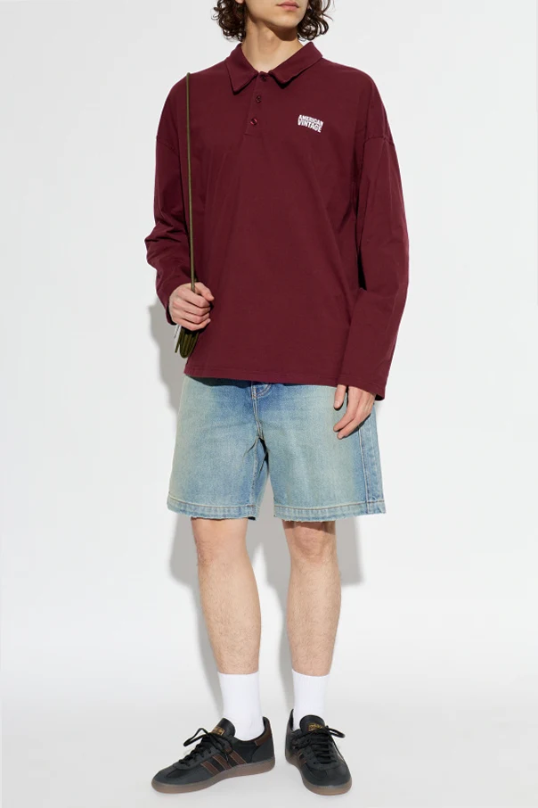 Das Shirt wurde aus hochwertiger Baumwolle gefertigt, die ein angenehmes Tragegefühl und eine exzellente Optik den ganzen Tag über garantiert. Der klassische Polokragen und die Knopfleiste mit drei Knöpfen in derselben bordeauxroten Farbe bilden eine wunderbar ausbalancierte, universelle Komposition. Besonders hervorzuheben ist das kontrastierende Designer-Logo „AMERICAN VINTAGE“ auf der linken Brust – ein dezentes Prestige-Symbol.