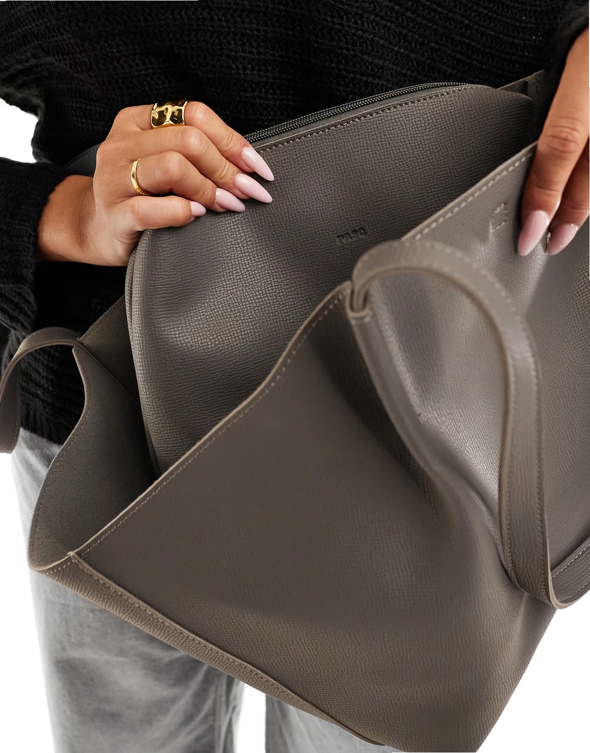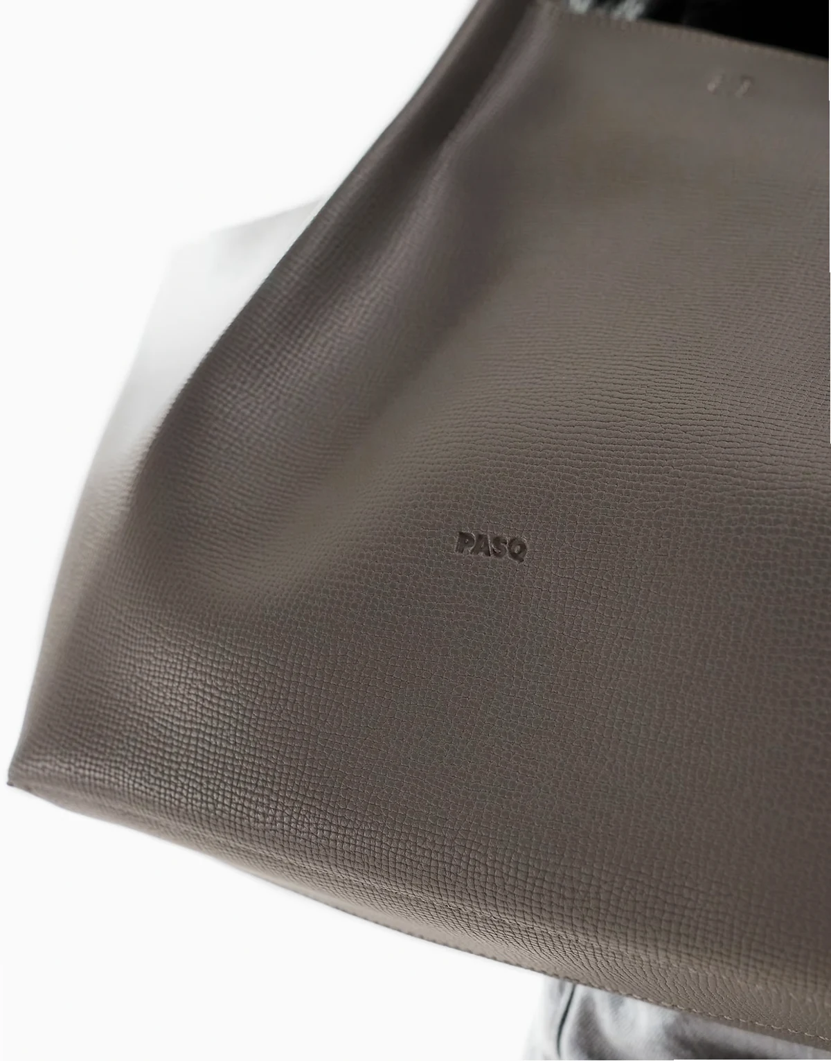 – Strukturierte Tragetasche in Grau mit zwei Henkeln und Falten vorne