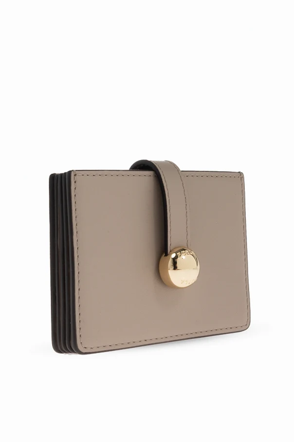 Ein besonderer Blickfang ist der vertikale Riemen mit rundem, goldfarbenem Metallknopf – nicht nur ein praktischer Verschluss, sondern auch ein raffinierter, dekorativer Akzent mit dezentem Designer-Logo. Präzise, farblich abgestimmte Nähte zeugen von höchster Handwerkskunst und Liebe zum Detail.