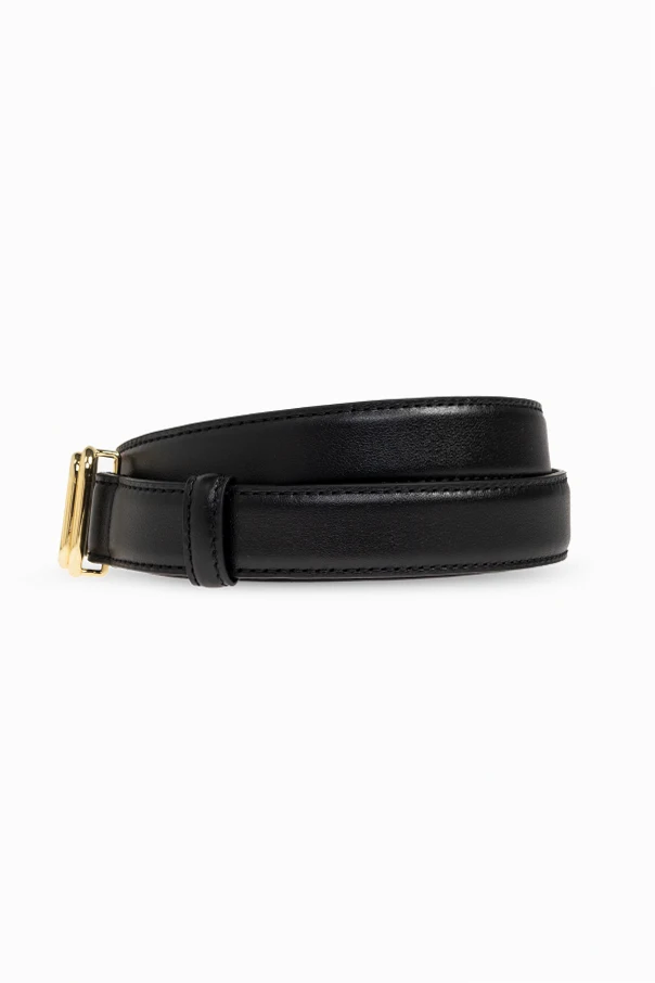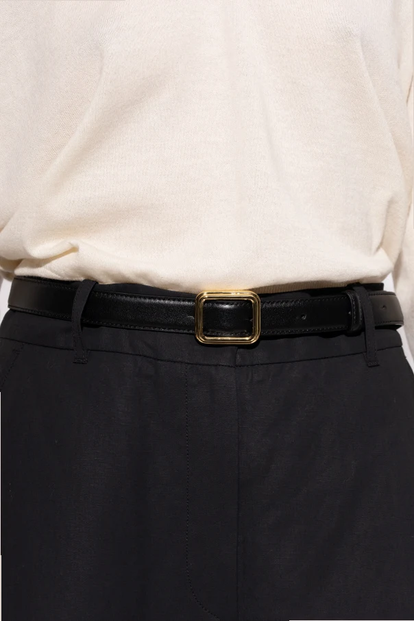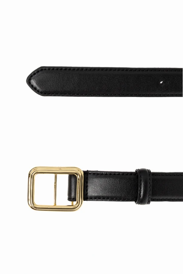 Die große, quadratische Schnalle in Goldfarbe – glatt, raffiniert, mit abgerundeten Ecken – verleiht dem Gürtel eine stilvolle, dekorative Note. Der Gürtel in Schwarz besticht durch seine Zurückhaltung, vollkommen frei von Zeichen oder Logos, während die dezenten Nähte entlang der Kante die Präzision der Verarbeitung betonen.