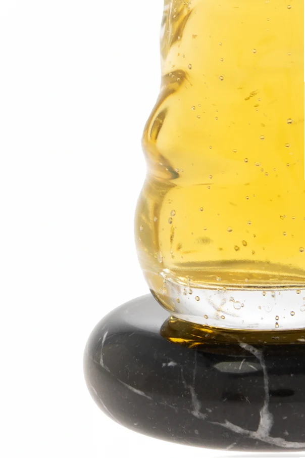 Hinoki Eau de Parfum von Bottega Veneta ist ein außergewöhnliches Kunstwerk des täglichen Gebrauchs, das Eleganz mit herausragender Handwerkskunst vereint. Der Flakon besticht durch seine außergewöhnliche, organische Form, die an eine von Hand geformte Skulptur erinnert. Das transparente Glas mit feinen Luftbläschen unterstreicht die unverwechselbare Ästhetik des Produkts. Die glatte, glänzende Basis aus schwarzem Marmor mit weißen Äderungen verleiht dem Gesamtbild Exklusivität und Stabilität. Das intensive Gelb des Flakons ruft die Noblesse luxuriöser Duftnoten hervor, während das matte Finish im oberen Bereich für Subtilität und Raffinesse steht. Das Design kommt ganz ohne überflüssige Schriftzüge aus und betont so den minimalistischen, anspruchsvollen Charakter.