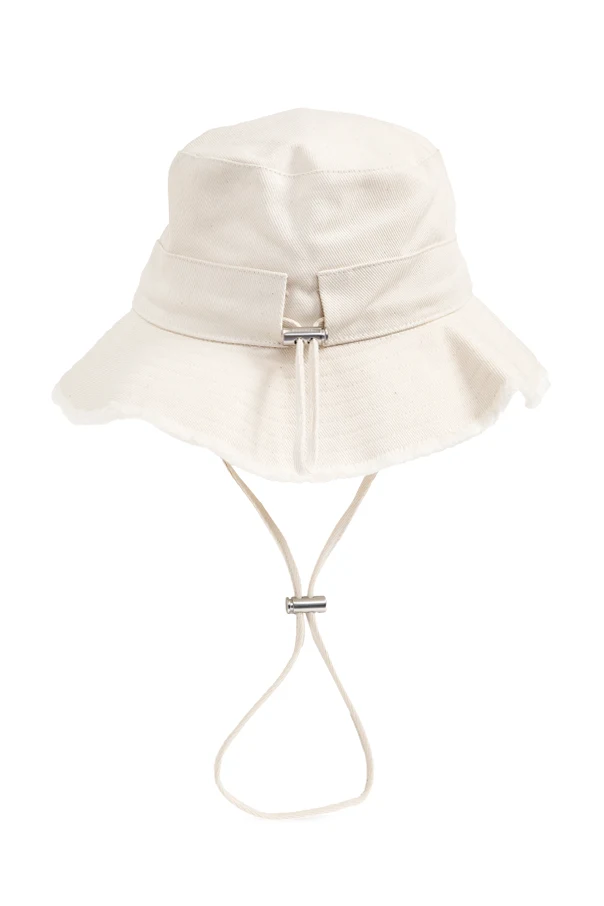 Am Band, das die Krone umgibt, ist das charakteristische metallische „JACQUEMUS“-Logo angebracht – ein Symbol für anspruchsvollen Geschmack. Die praktische, verstellbare Kordel mit Kunststoffverschluss ermöglicht eine perfekte Passform und garantiert hohen Tragekomfort, selbst in dynamischen urbanen Umgebungen.