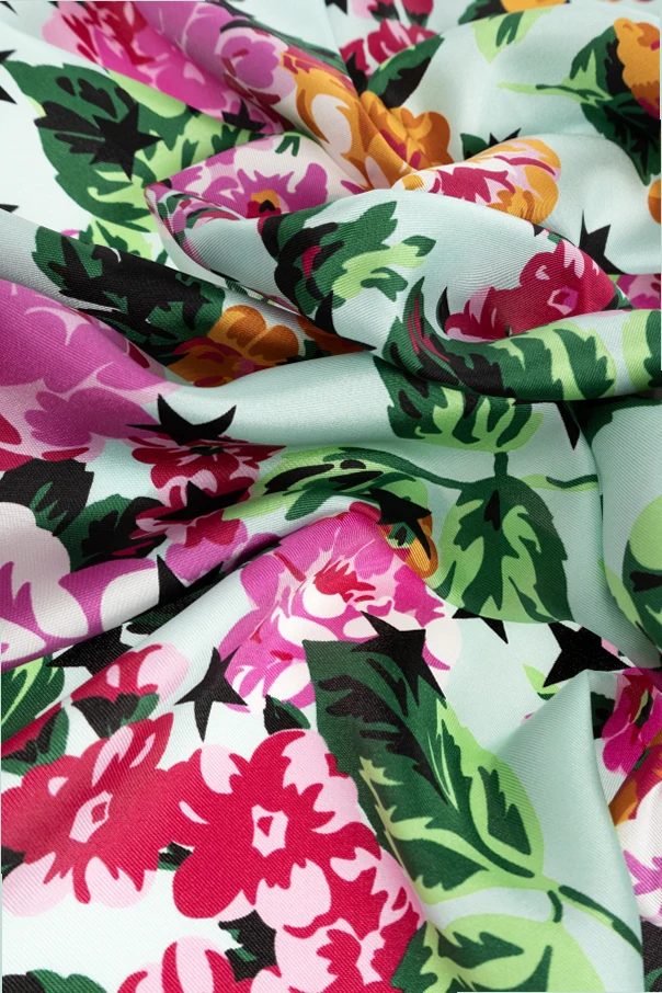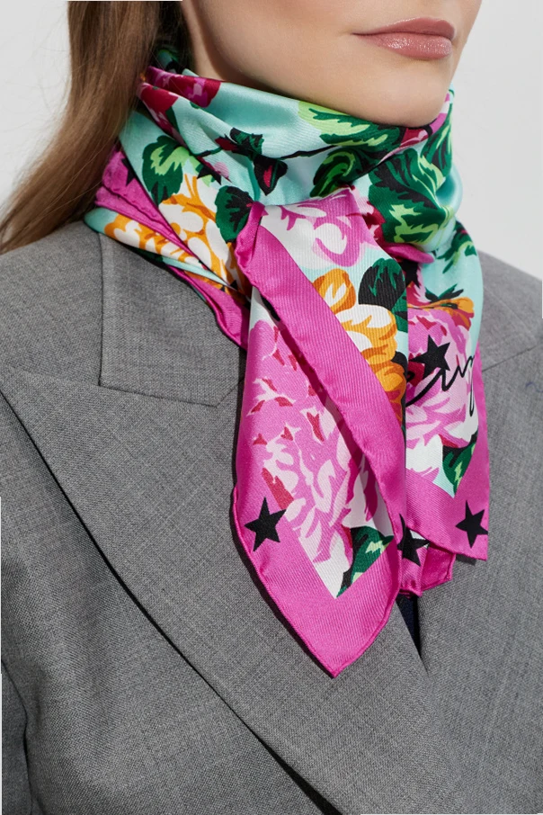 Seidenschal mit Blumenmotiv von Kenzo ist ein raffiniertes Accessoire, das den individuellen Stil jeder Frau unterstreicht. Er zeichnet sich durch die klassische, quadratische Form aus – ein Symbol zeitloser Eleganz.