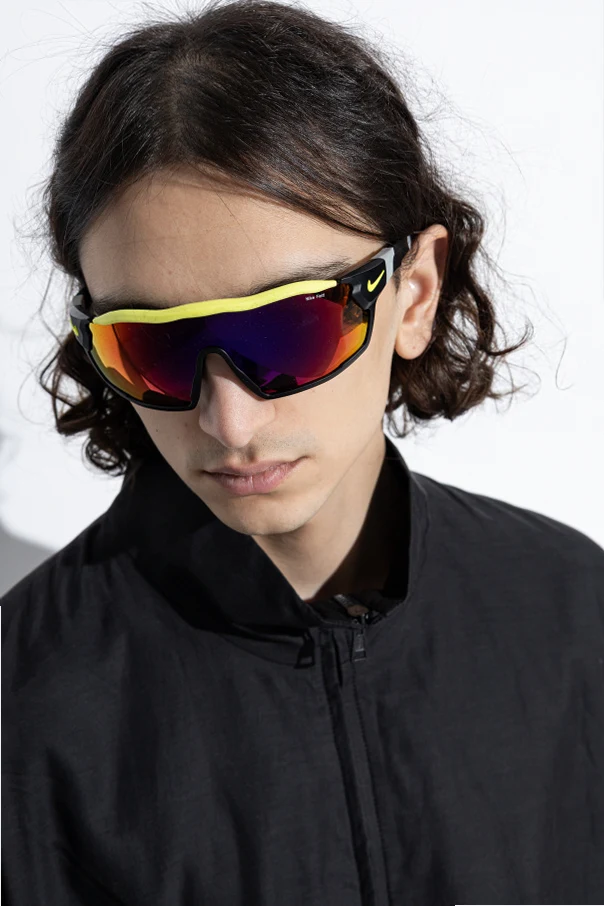 Das schwarze Gestell mit markantem, gelbem Detail strahlt energetische Eleganz aus. Ergonomische Profilierung und teilweise offene Konstruktion garantieren Komfort und einen unverwechselbaren Stil. Das matte Finish des Kunststoffs in Kombination mit der verspiegelten Linse mit einzigartigem violett-orange-gelbem Farbverlauf zieht die Blicke auf sich und hebt dieses Modell in jeder Situation hervor.