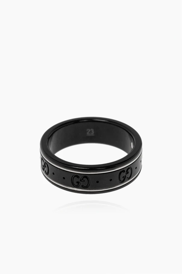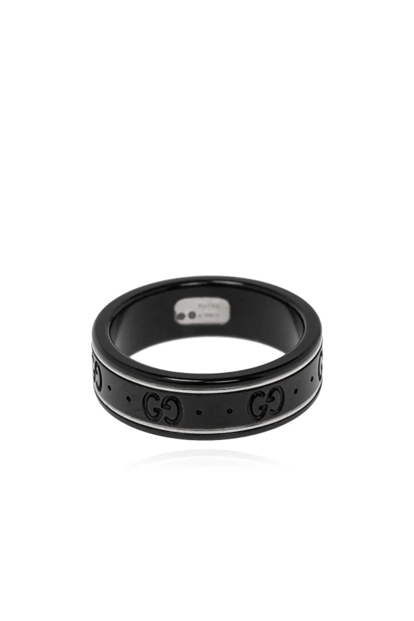 Wir präsentieren den Monogramm-Ring aus der exklusiven Icon-Kollektion der Marke Gucci. Dieses Schmuckkunstwerk, mit außergewöhnlicher Präzision und Liebe zum Detail gefertigt, verbindet Tradition mit Moderne. Die klassische, runde Form und das dunkle, schwarze Finish ziehen die Blicke auf sich, während die markanten „GG“-Monogramme den unverwechselbaren Stil betonen.