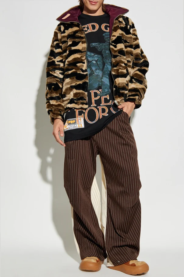 T-Shirt mit Print von PDF ist eine Empfehlung für Stilkenner, die nach außergewöhnlichen Lösungen in der Herrenmode suchen. Das Modell zeichnet sich durch einen Oversize-Schnitt mit breiten Linien, überschnittenen Schultern und kurzen Ärmeln aus und bietet außergewöhnliche Bewegungsfreiheit sowie einen modernen Ausdruck. Der klassische Crew-Neck-Ausschnitt rundet das harmonische Gesamtbild ab und betont dezent den Hals.