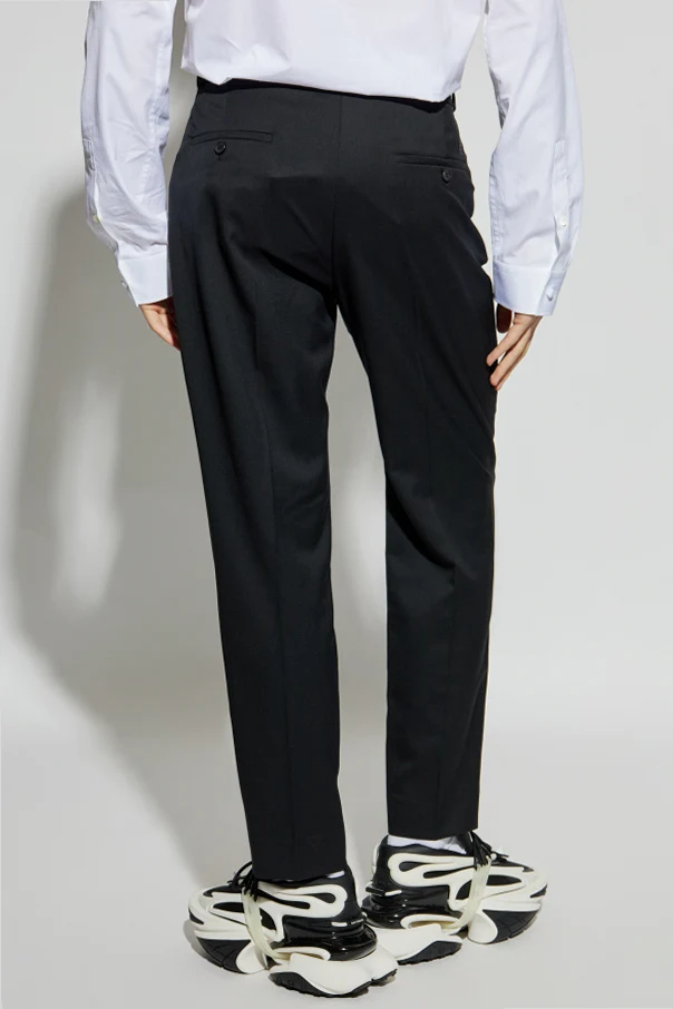 Wollhose mit Bügelfalte ist die Quintessenz raffinierter Klassik, inspiriert von der Eleganz des französischen Modehauses Balmain. Gefertigt aus hochwertiger Wolle, begeistert sie durch ihre glatte Struktur und die Vielzahl an Details – die Bügelfalte entlang der gesamten Beinlänge betont die Form und verleiht der Silhouette eine zeitlose Harmonie.
