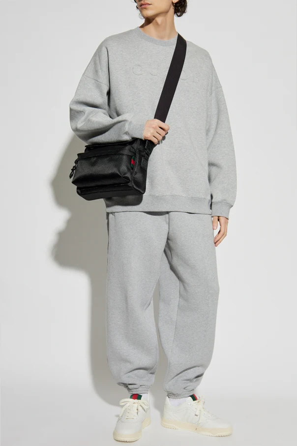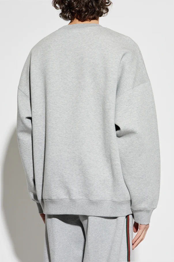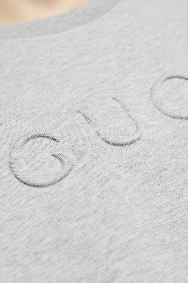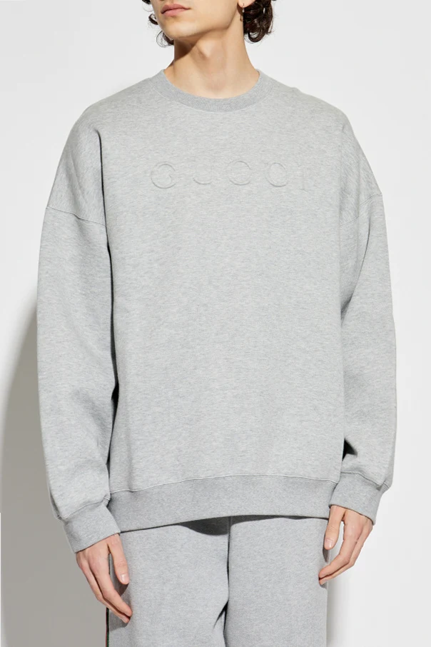 Wir präsentieren Ihnen das Sweatshirt mit Logo – ein herausragendes Werk der Marke Gucci, das die Quintessenz luxuriöser Eleganz darstellt. Dieses graue Sweatshirt, aus einer weichen Mischung aus Baumwolle und Polyamid gefertigt, bietet einen unvergleichlichen Tragekomfort. Sein einfacher Schnitt mit langen Ärmeln und Rundhalsausschnitt, ergänzt durch eine subtile Prägung des Designerlogos, verleiht ihm einen unverwechselbaren Charakter.
