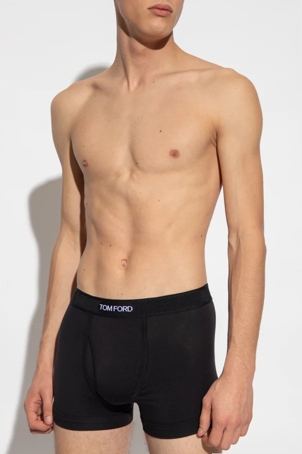 Black boxers from Tom Ford. Made of a cotton blend, this pair features an elasticated waistband with an embroidered white logo.