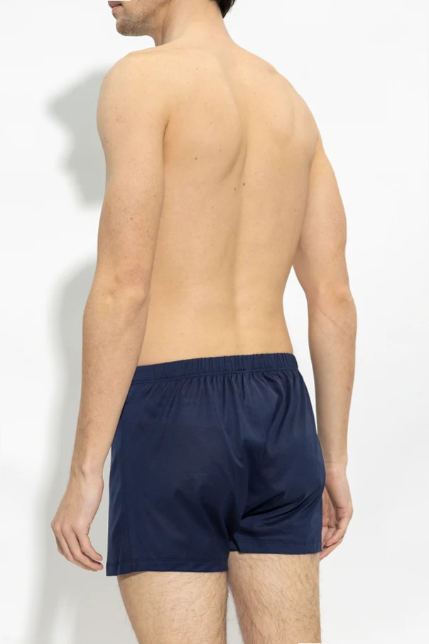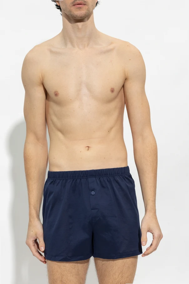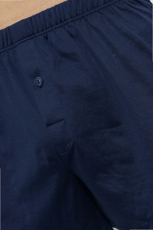 Navy boxers from Hanro. Made of mercerized cotton, this pair features an elastic waistband and button fastenings.