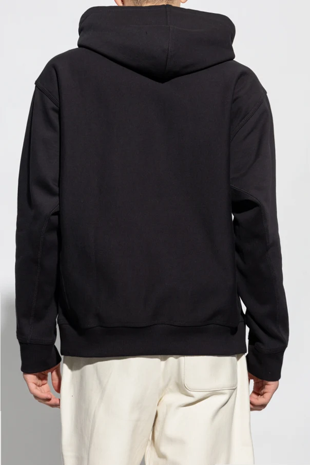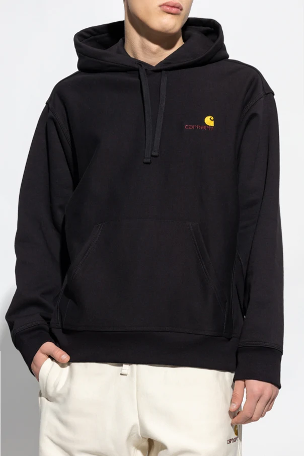 Black sweatshirt with a drawstring hood from Carhartt WIP. Crafted from cotton, this style features an embroidered logo, two slip pockets, long sleeves and ribbed trims on the edges.