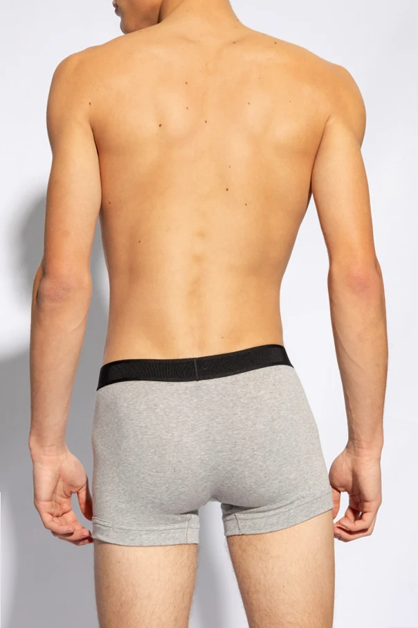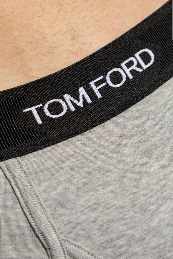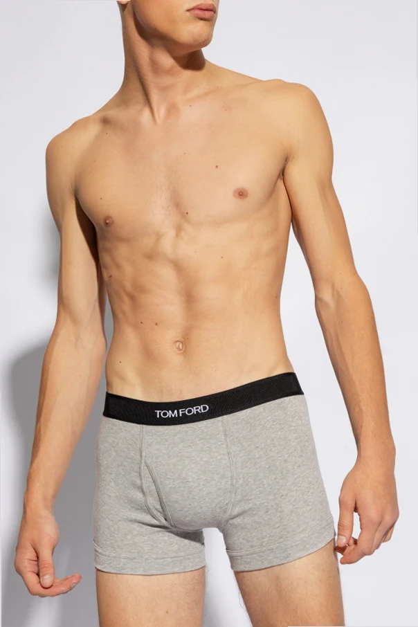 Grey and white boxers two-pack from Tom Ford. Made of cotton, each pair features a black elastic waistband with an embroidered white logo.