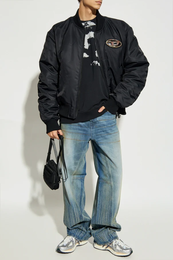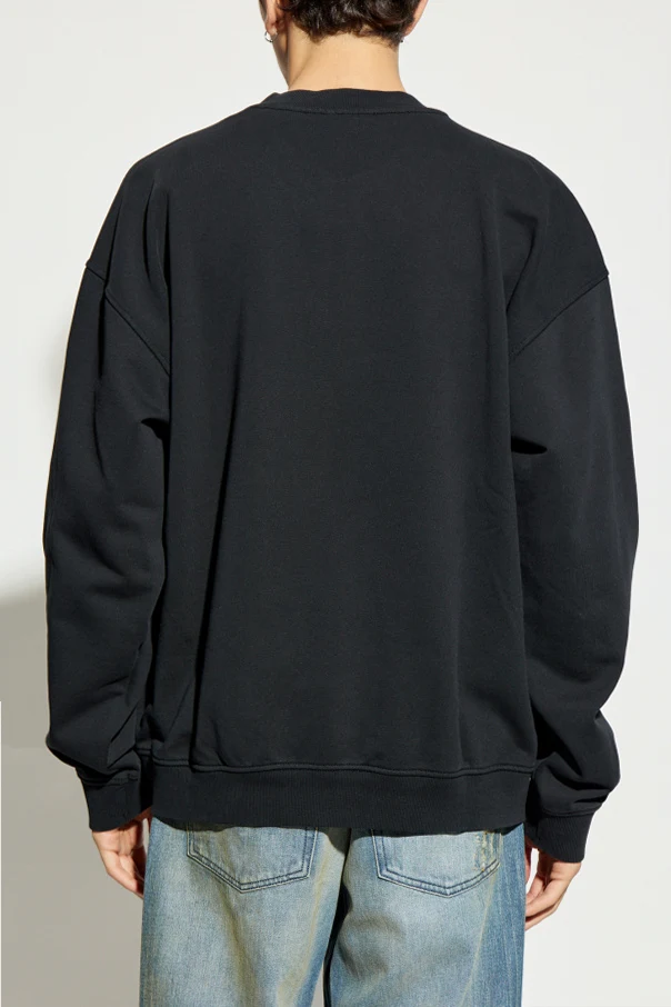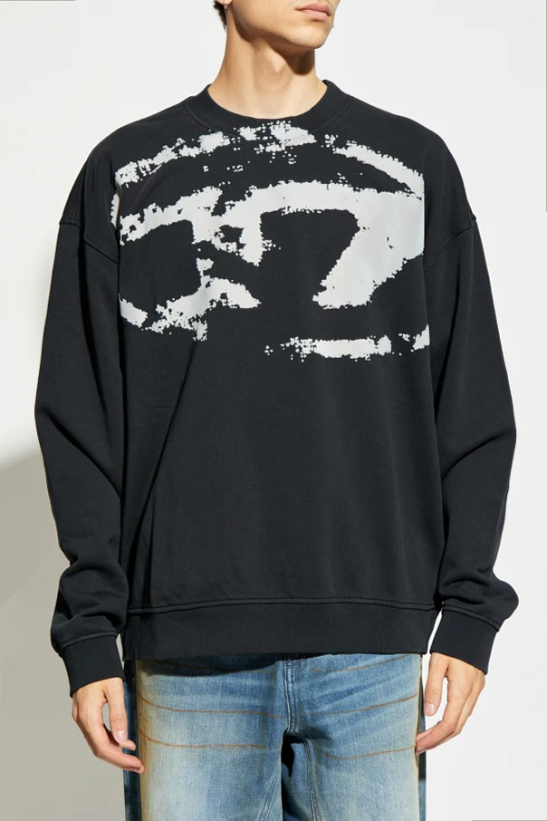 Die dominante schwarze Farbe wird durch subtile, graue Akzente aufgelockert, was dieses Modell äußerst stilvoll macht. Ein weiterer Vorteil sind die Rippstrickbündchen an den Ärmeln und am unteren Saum des Pullovers, die eine perfekte Passform garantieren. Das Innere des Ausschnitts ist mit einem roten Etikett mit weißem "DIESEL"-Schriftzug verziert, was den Prestigewert der Marke unterstreicht.