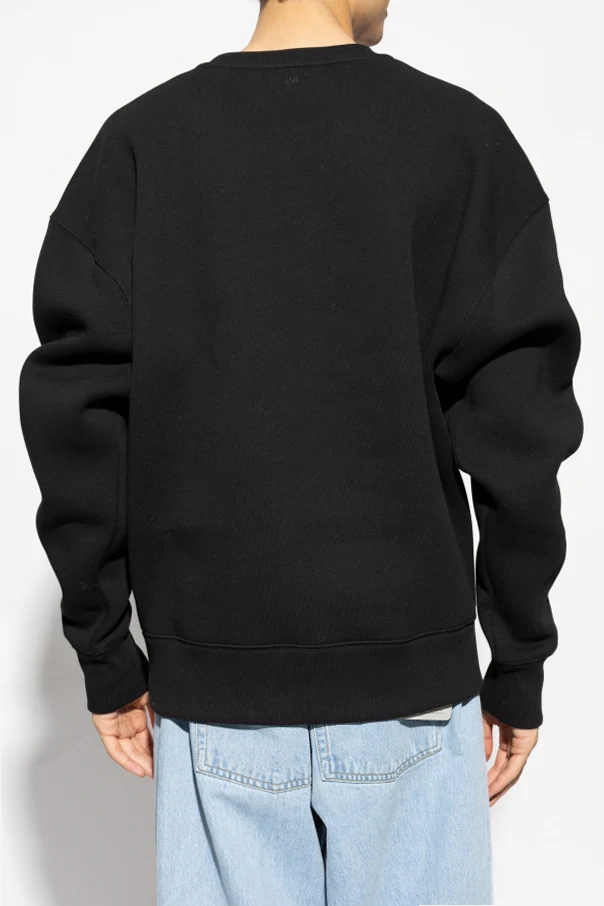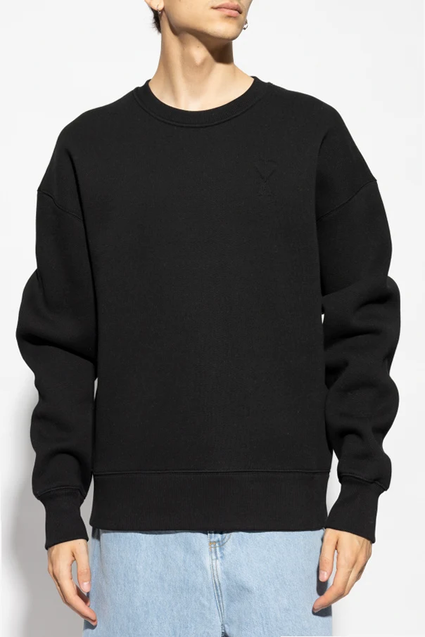 Wir präsentieren den schwarzen Pullover mit Logo aus der exklusiven Kollektion des renommierten Designers Ami Alexandre Mattiussi . Dieses klassische Crewneck-Sweatshirt, hergestellt aus hochwertigen Materialien, besticht durch seine Schlichtheit und Eleganz.