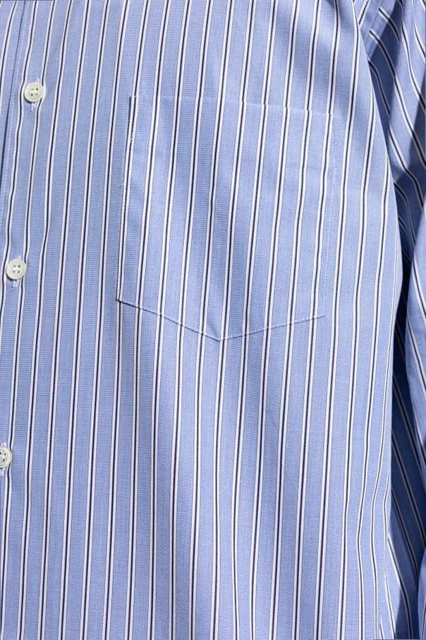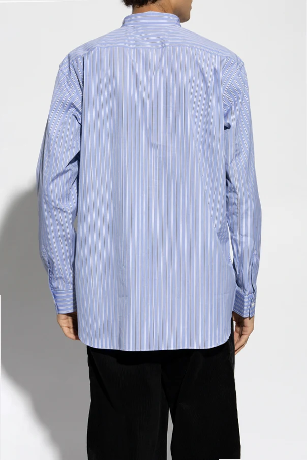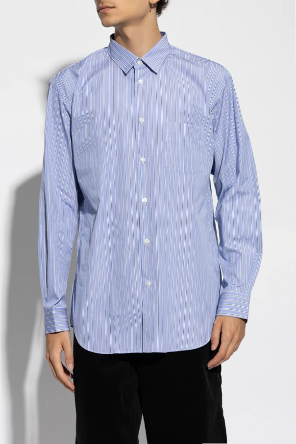 Wir präsentieren das Herrenhemd aus der exklusiven Kollektion Comme des Garçons Shirt , das durch seine Schlichtheit und raffinierte Schneiderei begeistert. Das Hemd mit vertikalem Streifenmuster in dominierendem Blau strahlt einen lässigen und gleichzeitig eleganten Stil aus, der perfekt für alltägliche, legere Anlässe ist.
