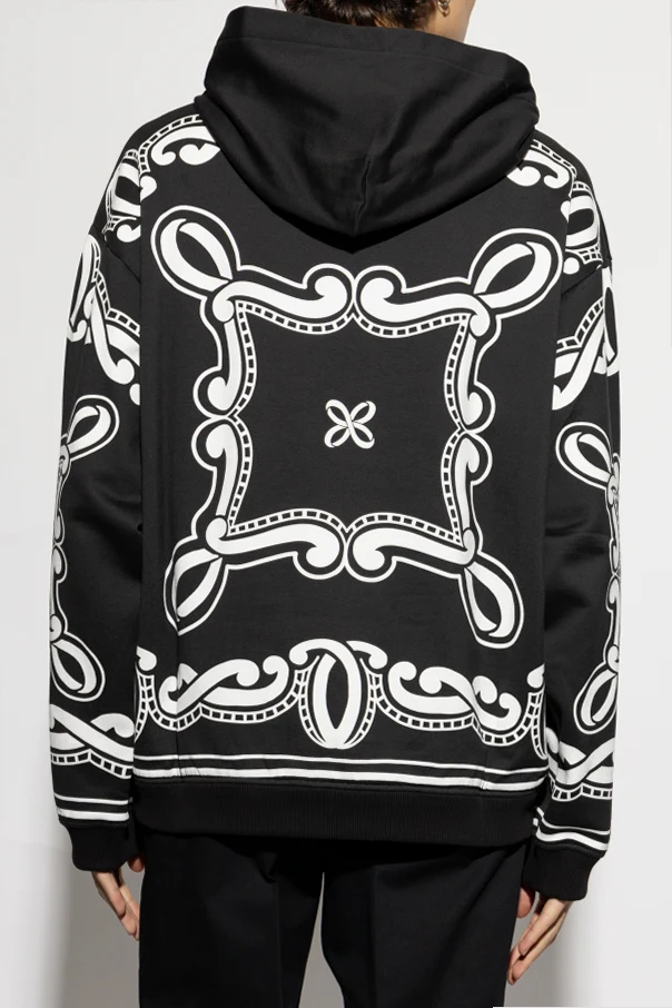 Wir präsentieren das Hoodie , ein einzigartiges Kunstwerk der prestigeträchtigen Marke Dolce & Gabbana . Dieses außergewöhnliche Hoodie strahlt Eleganz aus, dank des von Paisley inspirierten Musters, das in weißen Tönen mit dem tiefschwarzen Hintergrund kontrastiert.