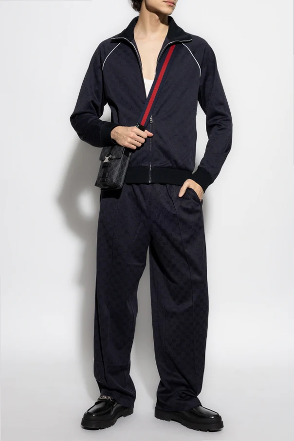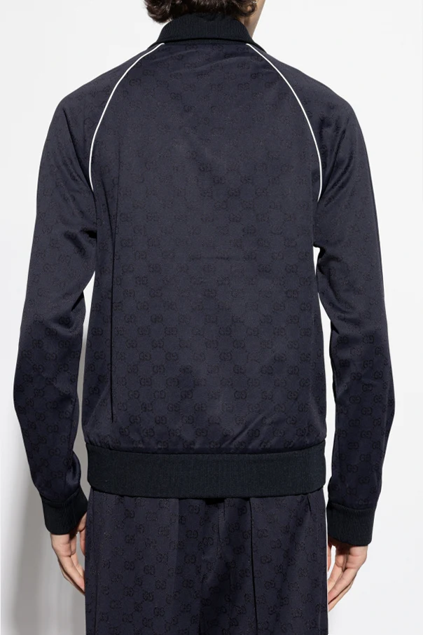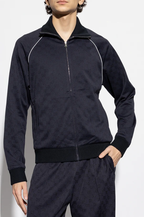Wir präsentieren Ihnen das Sweatshirt mit GG-Muster , das die Quintessenz der luxuriösen Ästhetik der Marke Gucci verkörpert. Dieses marineblaue Sweatshirt aus der exklusiven Kollektion, entworfen von Kreativdirektor , zeichnet sich durch die subtile Anordnung des charakteristischen GG-Musters auf der gesamten Oberfläche des Materials aus.