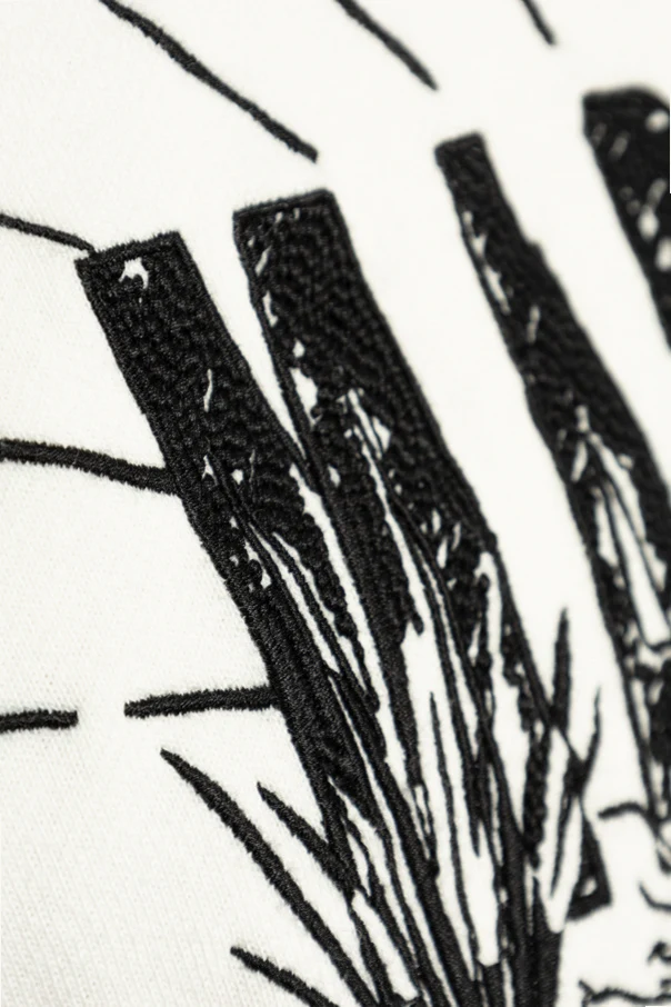 Wir präsentieren das Mikoy Sweatshirt aus der exklusiven Kollektion der Marke MARANT. Dieses elegante weiße Sweatshirt im klassischen Crewneck -Stil besticht durch seine Subtilität und Raffinesse. Auf der Vorderseite befindet sich ein auffälliger schwarzer Print mit dem Schriftzug "MARANT" sowie einem grafischen Pflanzenmotiv, das an Sonnenstrahlen erinnert und ihm einen künstlerischen Charakter verleiht.