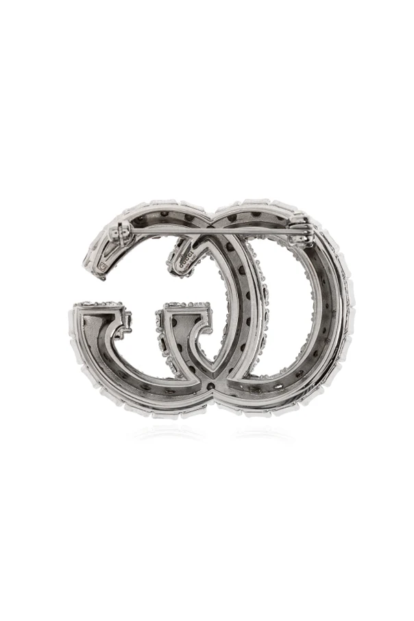 Diese einzigartige Brosche, ein Werk der Marke Gucci , hat die Form zweier ineinander verschlungener Buchstaben, was sie zu einem Symbol für anspruchsvollen Geschmack und höchste Mode macht. Die silberne Farbgebung betont ihren luxuriösen Charakter und macht sie zu einem unverzichtbaren Teil der Garderobe jeder Person, die Eleganz schätzt.