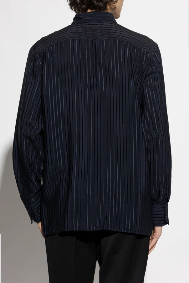 Wir präsentieren das Seidenhemd mit Streifenmuster aus der exklusiven Kollektion des Modehauses Saint Laurent . Hergestellt aus hochwertigster Seide, strahlt das Hemd Luxus und Raffinesse aus.