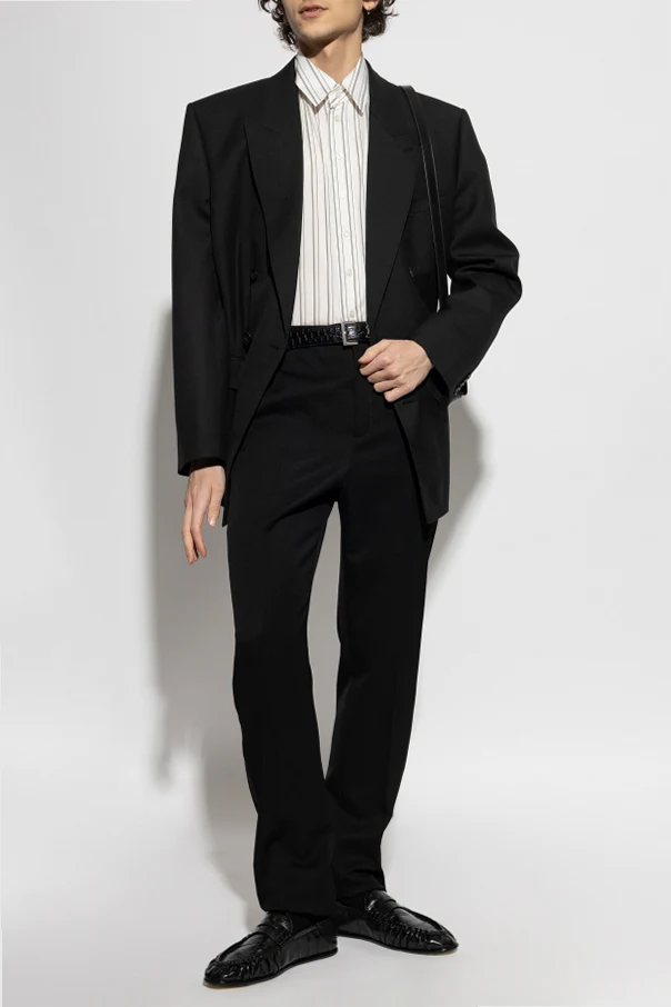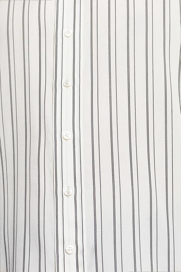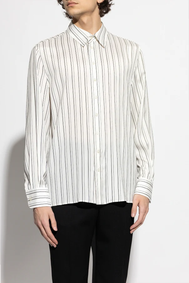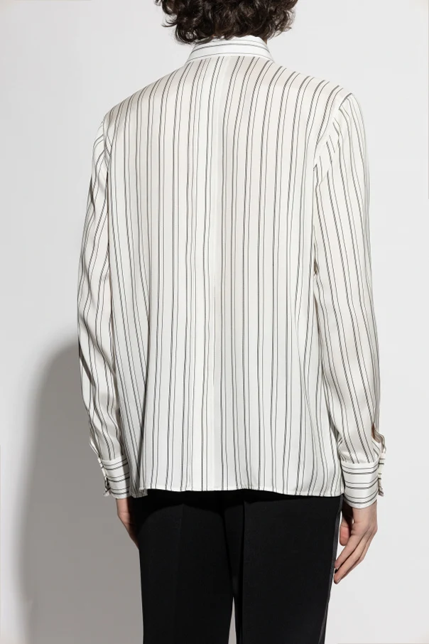 Wir präsentieren ein hervorragendes gestreiftes Hemd aus der exklusiven Kollektion des Modehauses Saint Laurent . Dieses schwarz-weiße Hemd, aus hochwertigster Seide gefertigt, strahlt Eleganz und Raffinesse aus. Gleichmäßig verteilte vertikale Streifen verleihen ihm einen unverwechselbaren Charakter, der die Blicke auf sich zieht und jedem formellen Outfit Stil verleiht.