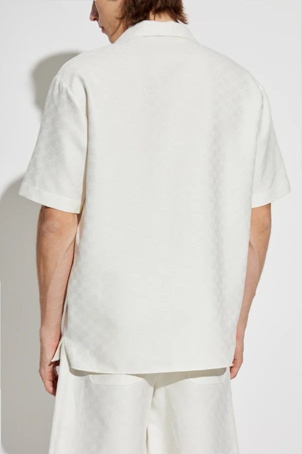 Verzaubern Sie Ihre Welt mit Eleganz und Subtilität dank des Hemd mit GG-Muster aus der exklusiven Kollektion der Marke Gucci . Entworfen mit Blick auf moderne Trends, kombiniert dieses Hemd einen klassischen Schnitt mit modernen Akzenten, was es zur idealen Wahl für formelle Sommeranlässe macht.