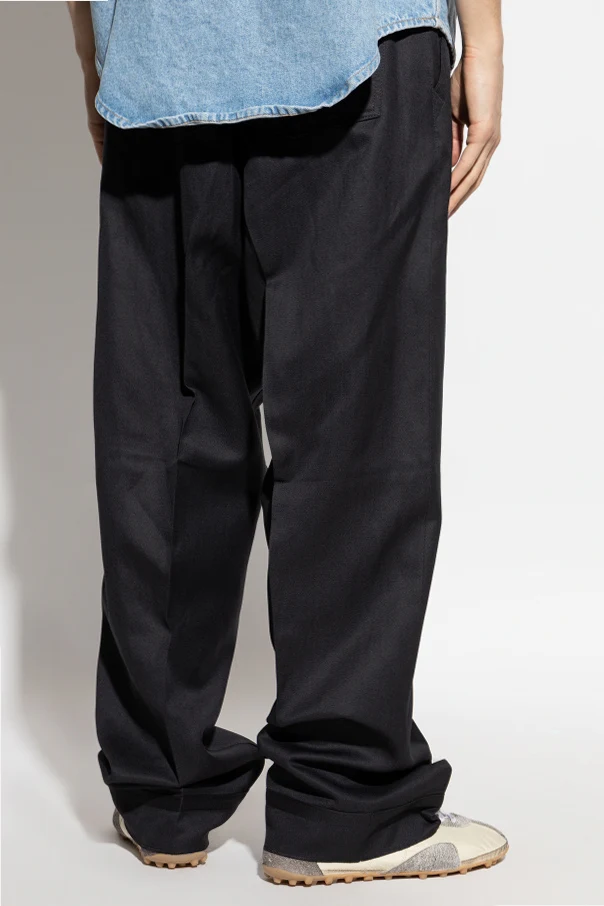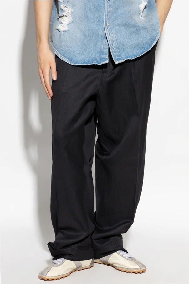 Entworfen vom renommierten Modehaus Maison Margiela , zeichnen sich die Hosen durch einen lockeren Schnitt aus, der Komfort bietet, und die seitlichen Taschen erhöhen ihre Funktionalität. Sie sind mit Reißverschluss und Hakenverschluss versehen und frei von sichtbaren Logos, was sie zur perfekten Wahl für jede formelle Gelegenheit macht.