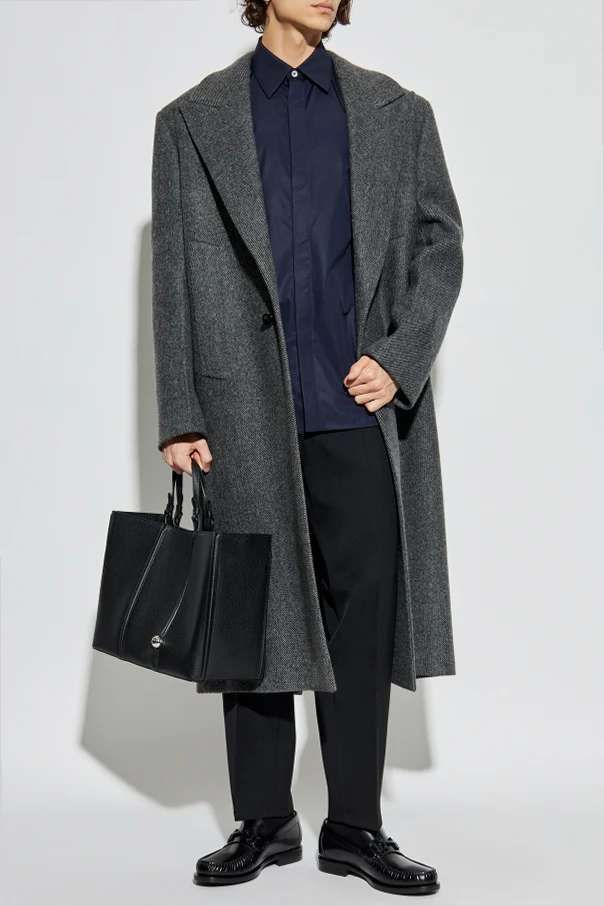 Gefertigt aus hochwertigster Wolle bietet der Mantel Komfort und Wärme, was ihn an kühlen Tagen unverzichtbar macht. Breite Revers und eine einreihige Knopfleiste unterstreichen seinen eleganten Charakter, während subtile Akzente wie ein Designer-Label im Krageninneren für Prestige und höchste Qualität sprechen.