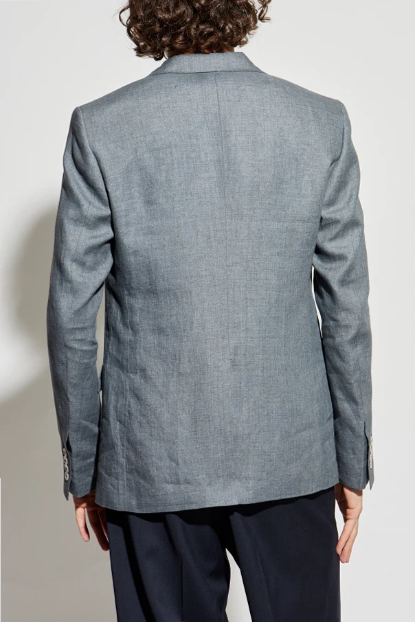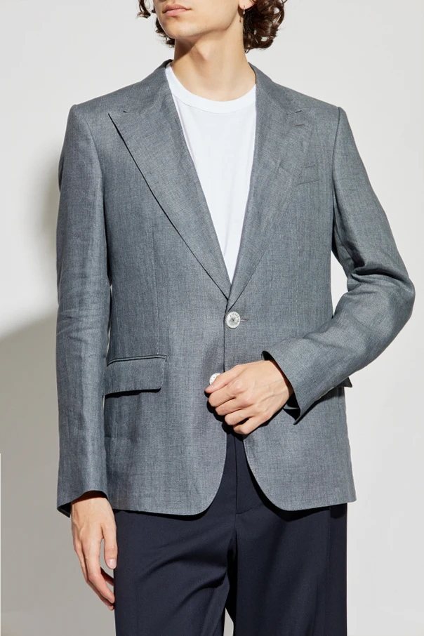 Der klassische, leicht taillierte Schnitt vereint nahtlos Komfort mit einer raffinierten Silhouette, während die geschlossenen, verlängert geschnittenen Revers das traditionelle Sakkodesign aufbrechen und ihm einen zeitlosen Charakter verleihen. Der edle, kühle Grauton und die glänzenden, hellen Knöpfe, gefertigt mit besonderer Liebe zum Detail, unterstreichen die Raffinesse des Designs.