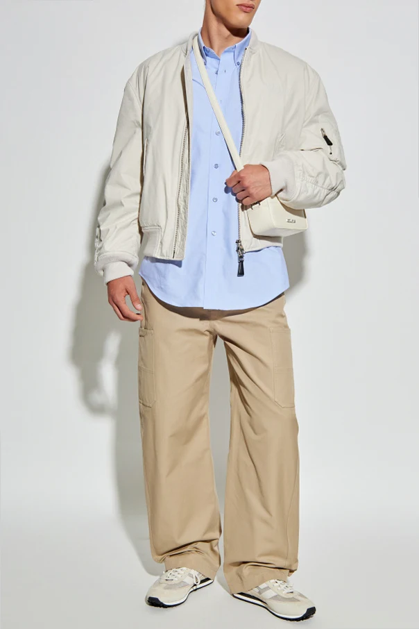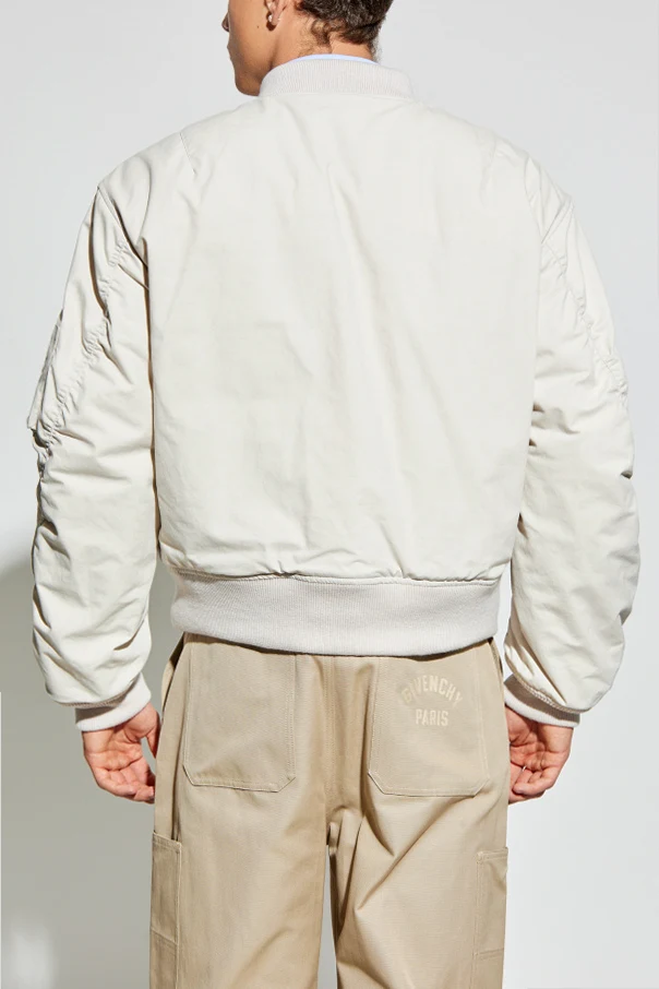 Die Bomberjacke von Givenchy ist die perfekte Wahl für Herren, die eine moderne Interpretation klassischer Eleganz schätzen. Das Modell in einem strahlenden, cremefarbenen Ton fasziniert durch seine dezente, matte Oberflächenstruktur mit klar spürbarer Haptik, die das anspruchsvolle Handwerk unterstreicht.