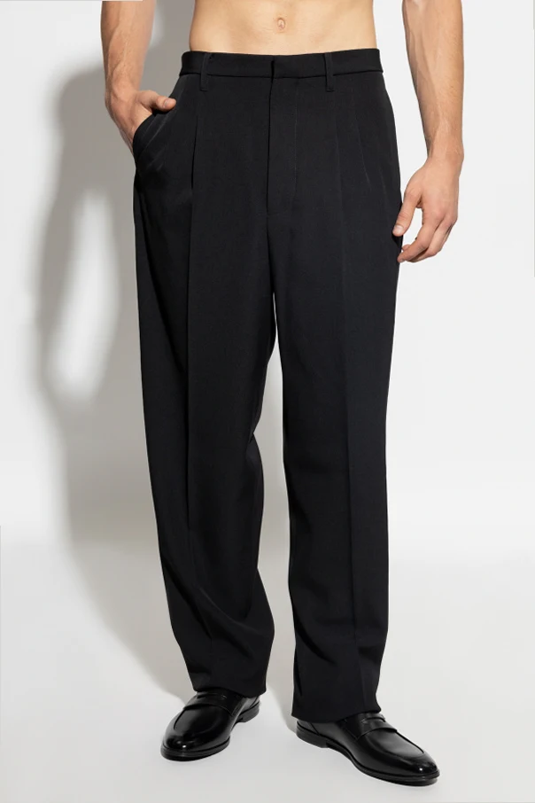 Bügelhose , signiert vom Modehaus Givenchy, verkörpert zeitlose Eleganz. Der klassische Schnitt mit einem geraden, leicht ausgestellten Bein betont harmonisch die Silhouette und bietet einen raffinierten Charakter, der selbst den anspruchsvollsten Stilkennern gerecht wird. Die hohe Taille in Kombination mit den Bügelfalten, die über die gesamte Länge beider Beine verlaufen, sorgt für einen außergewöhnlich gepflegten und formellen Look und unterstreicht die makellose Schneiderkunst.