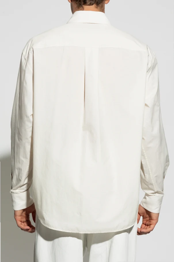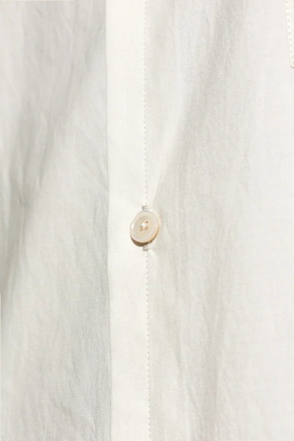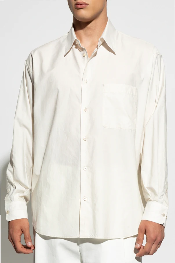 Das Hemd mit Brusttasche von Lemaire verkörpert raffinierten Minimalismus. Sein klassischer Schnitt zeichnet sich durch eine gerade, leicht lockere Linie sowie einen sorgfältig geformten Kragen aus. Bewusste Eleganz zeigt sich in der glatten, cremefarbenen Nuance und in subtilen Details wie der zarten Brusttasche und den dezenten Knöpfen aus hellem Material. Der luxuriöse Stoff, in dem die Hochwertigkeit von Baumwolle mit Seide verschmilzt, verleiht dem Hemd Weichheit und ein mattes Finish und unterstreicht so den einzigartigen Charakter dieses Produkts.